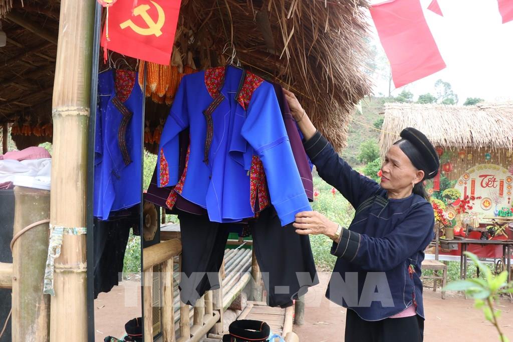 Sản phẩm quần áo truyền thống của đồng bào dân tộc Nùng để du khách thuê, mua về làm quà. Ảnh: Thanh Thương - TTXVN