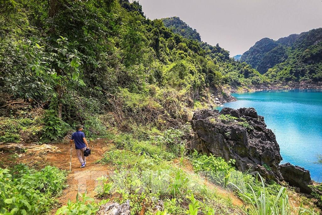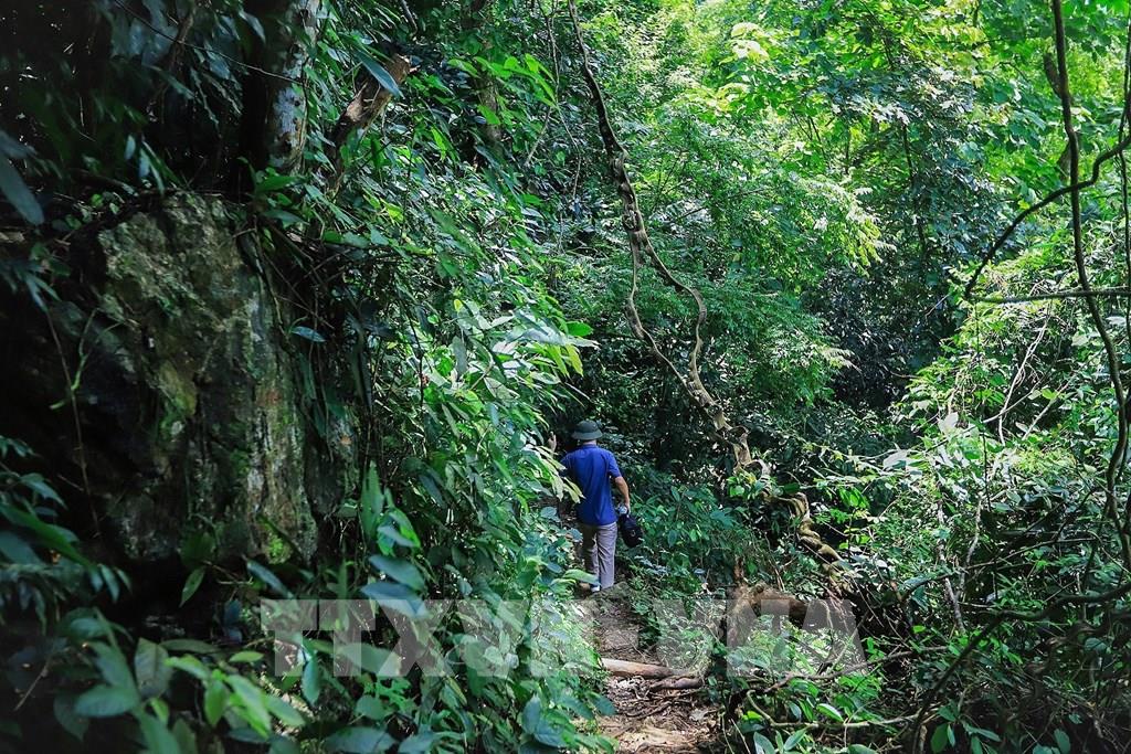 Đường đi lên hồ Mắt Ngọc xuyên qua rừng và vẫ là thử thách cho những du khách. Ảnh: Trọng Đạt-TTXVN