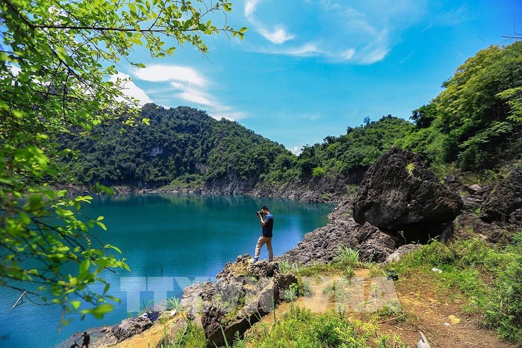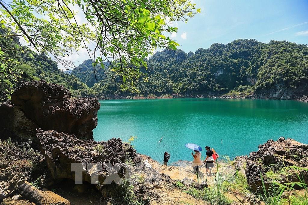 Hồ Mắt Ngọc vẫn còn hoang sơ, không ồn ào dịch vụ, dành cho những ai muốn hòa mình vào thiên nhiên hoặc đơn giản chỉ để thả lỏng tâm trí. Ảnh: Trọng Đạt-TTXVN