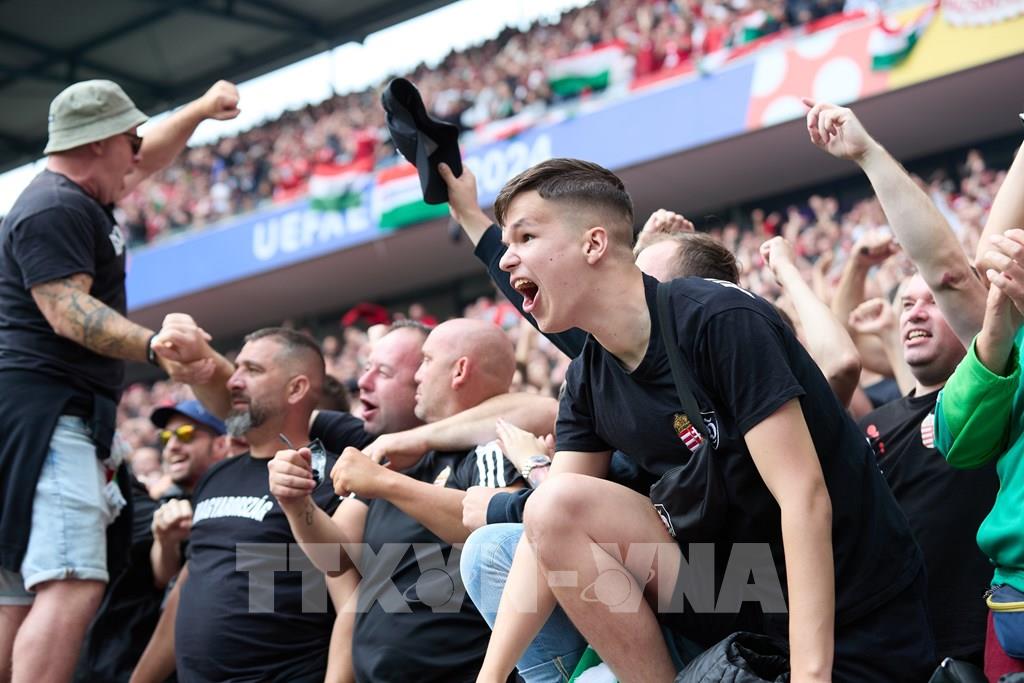 Các cổ động viên trên khán đài theo dõi trận Thụy Sĩ gặp tuyển Hungary. Ảnh: THX/TTXVN