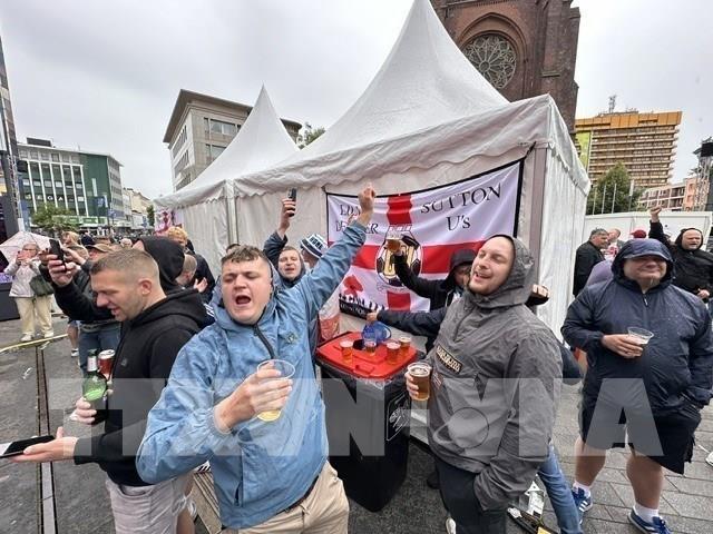 Cổ động viên Anh đổ về trung tâm thành phố Gelsenkirchen (CHLB Đức). Ảnh: Anh Ngọc - PV TTXVN