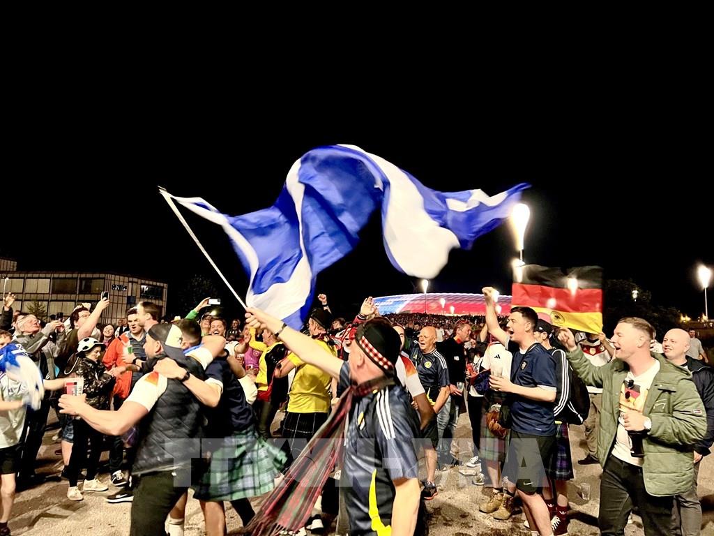 Dù thua trong trận ra quân, nhưng đội tuyển Scotland có màn ăn mừng bàn thắng duy nhất khá ấn tượng. Ảnh: Phương Hoa - Pv TTXVN