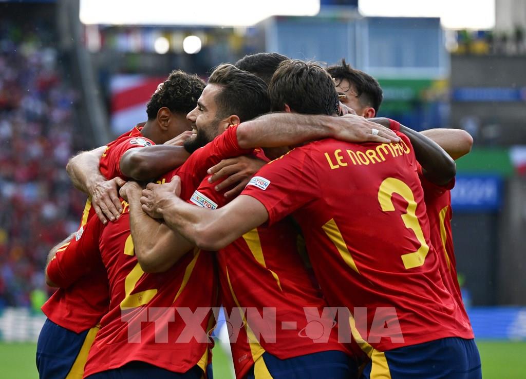 Đội tuyển Tây Ban Nha ăn mừng chiến thắng trước đội tuyển Croatia trong trận ra quân. Ảnh: THX/TTXVN