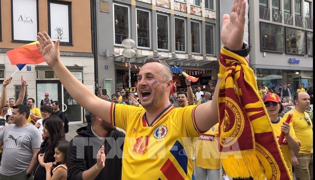 Cổ động viên Romania hô vang "Chiến thắng, chiến thắng". Ảnh: Phương Hoa - PV TTXVN