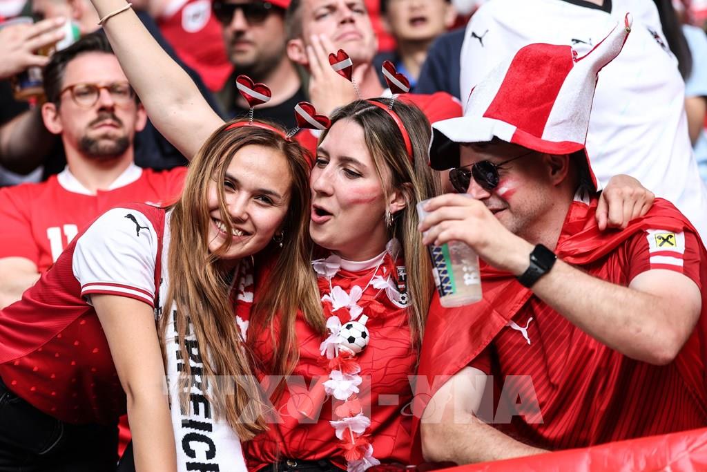 Cổ động viên Áo trên khán đài sân Duesseldorf Arena. Ảnh: THX/TTXVN