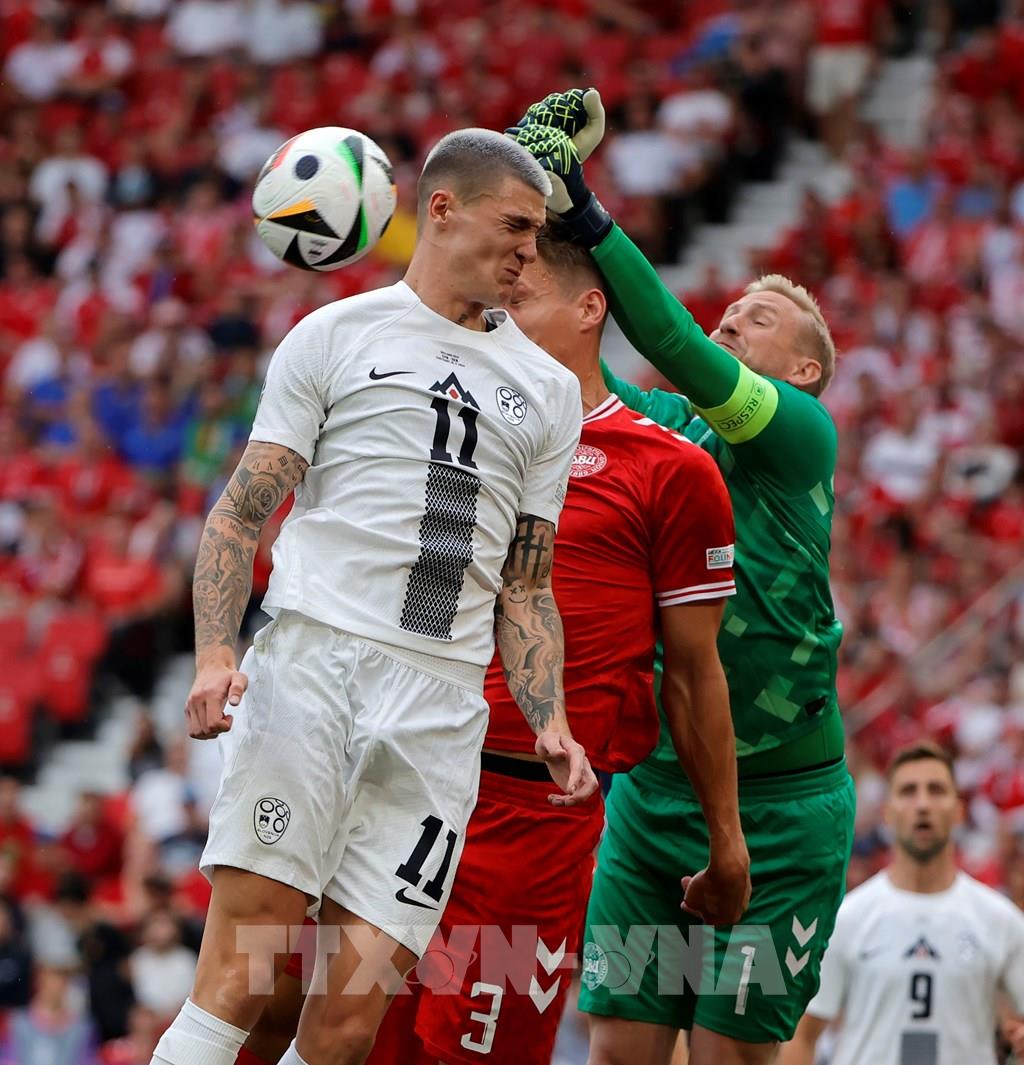 Pha cứu thua của Thủ môn Đan Mạch Kasper Schmeichel (phải). Ảnh: THX/TTXVN