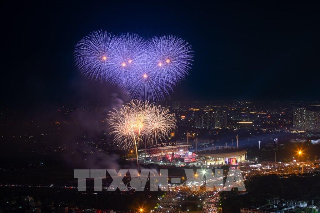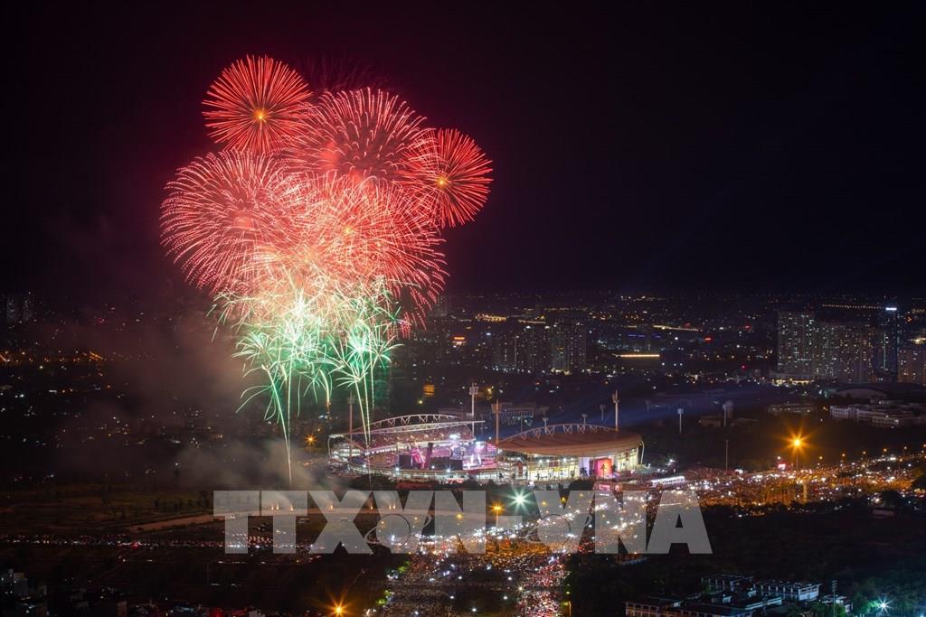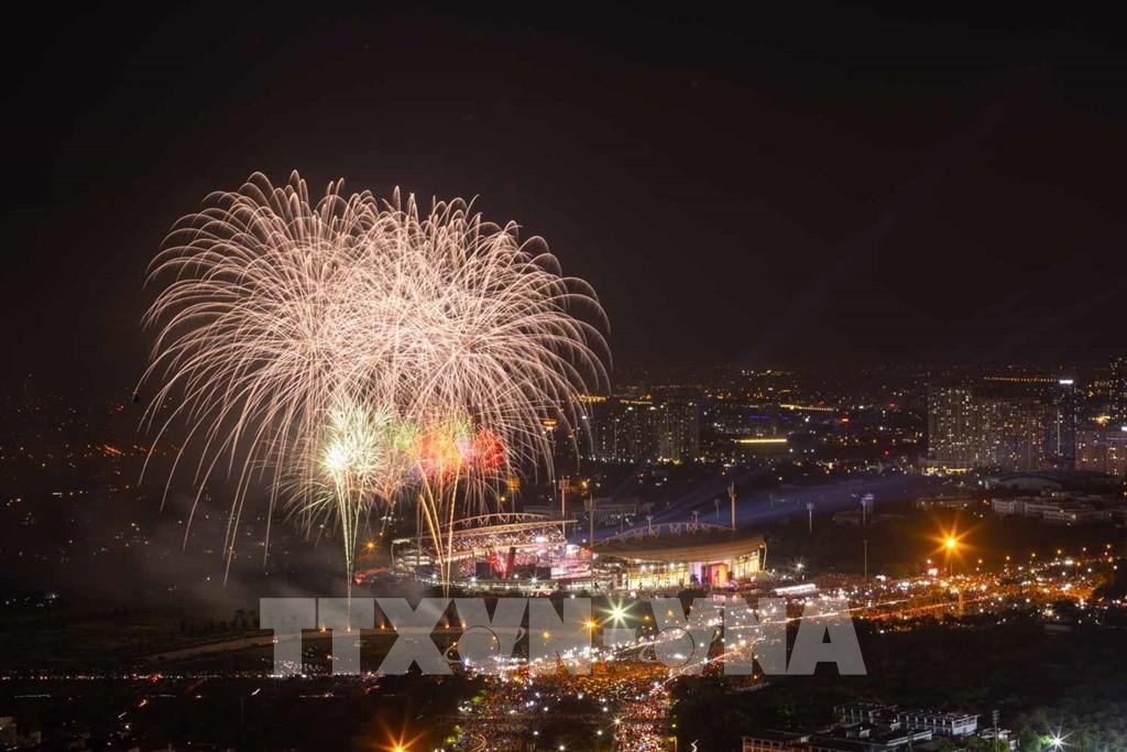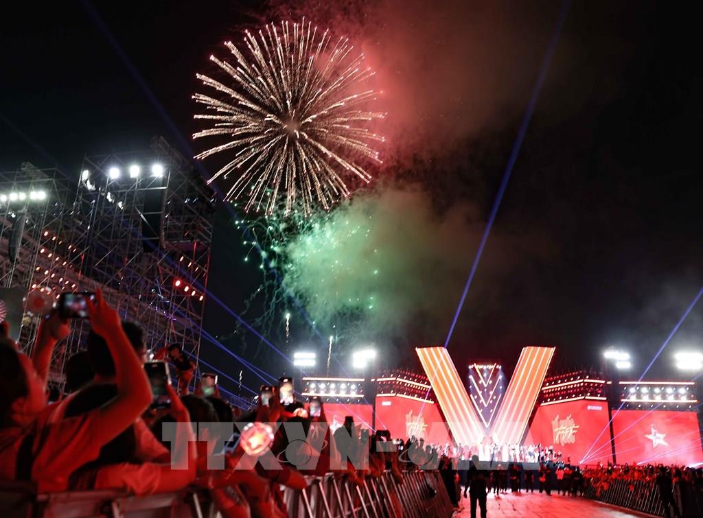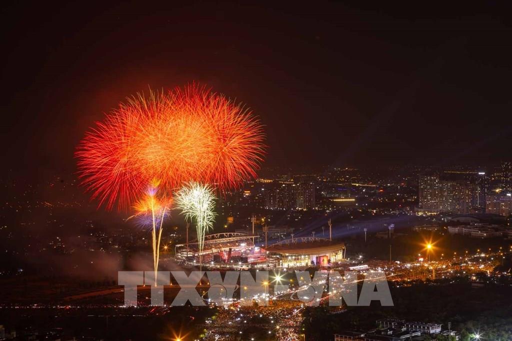 Khán giả xem pháo hoa rực rỡ cuối chương trình. Ảnh: TTXVN