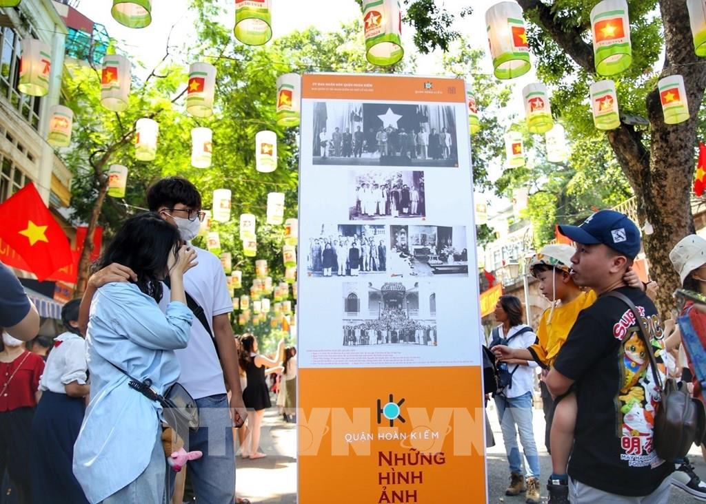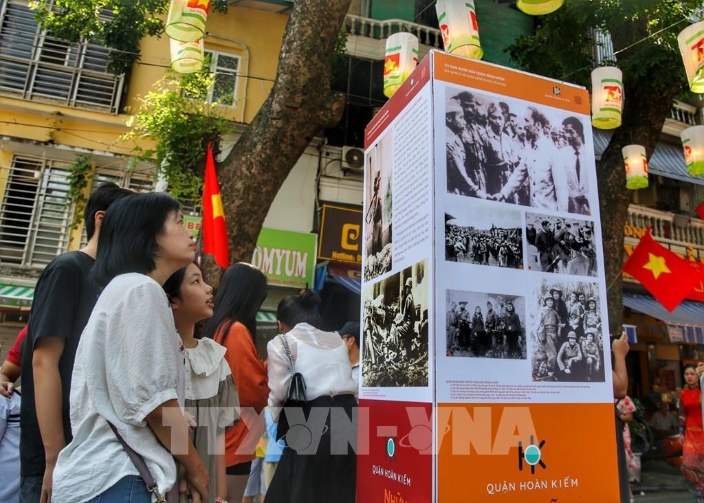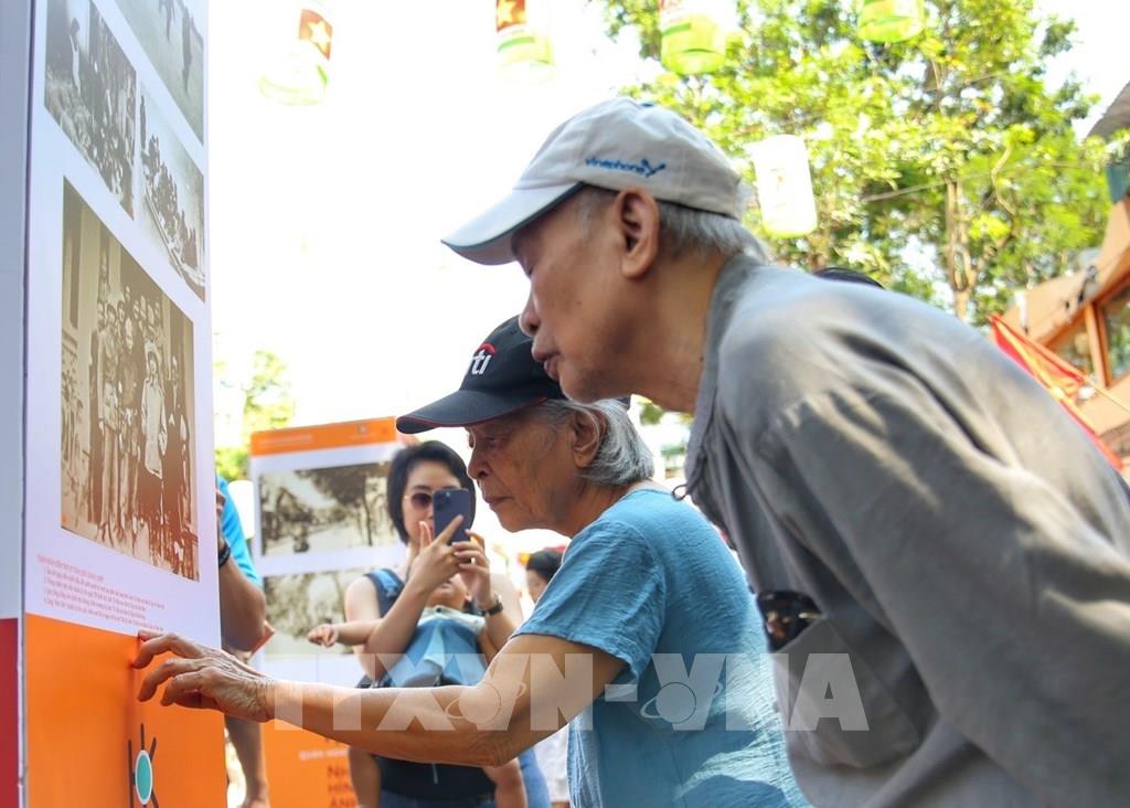 Người dân xem những hình ảnh lịch sử của Hà Nội thời kỳ kháng chiến chống Pháp. Ảnh: Tuấn Đức - TTXVN