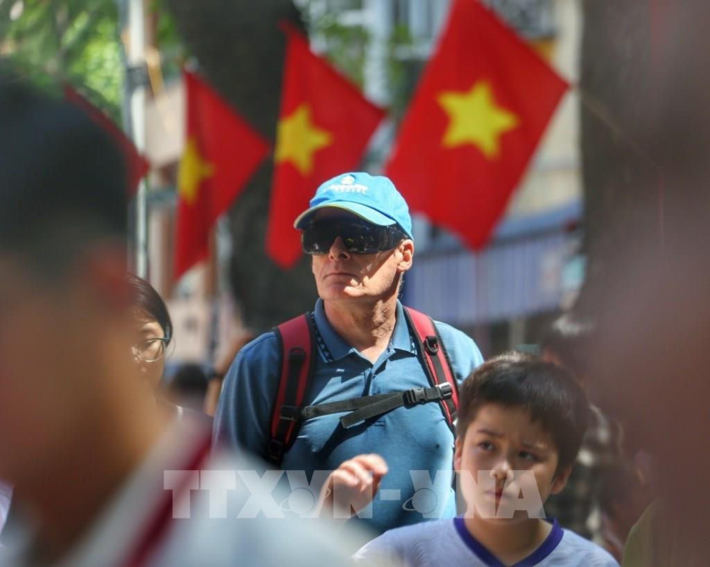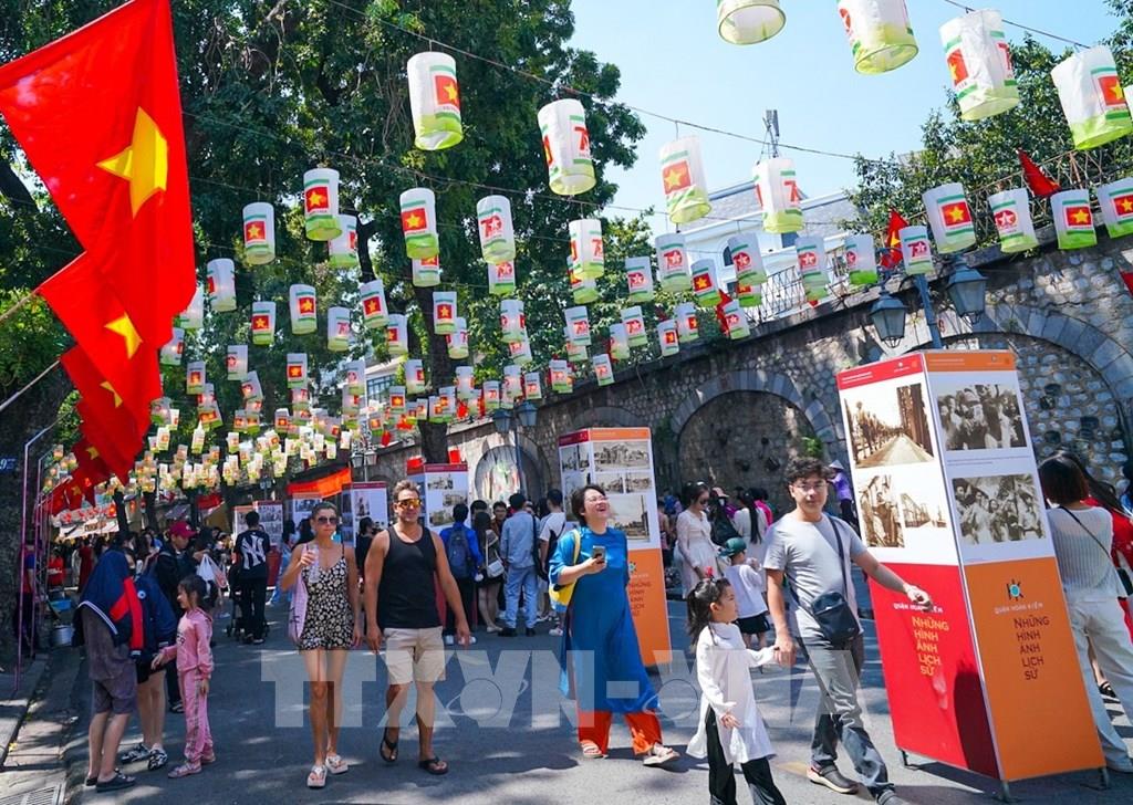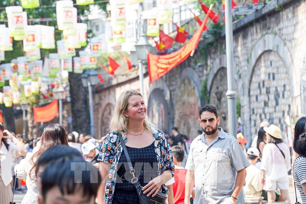 Du khách nước ngoài thưởng thức một ngày đáng nhớ trên phố Phùng Hưng. Ảnh: Khánh Hòa - TTXVN