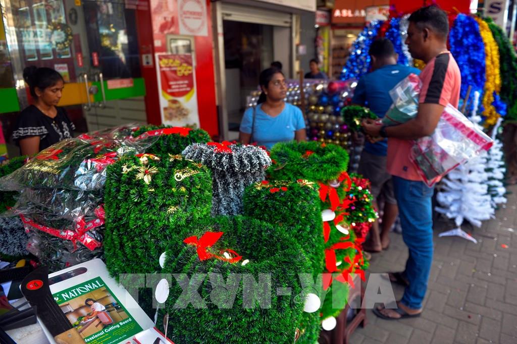 Người dân mua đồ trang trí Giáng sinh tại khu chợ ở Colombo, Sri Lanka. Ảnh: THX/TTXVN