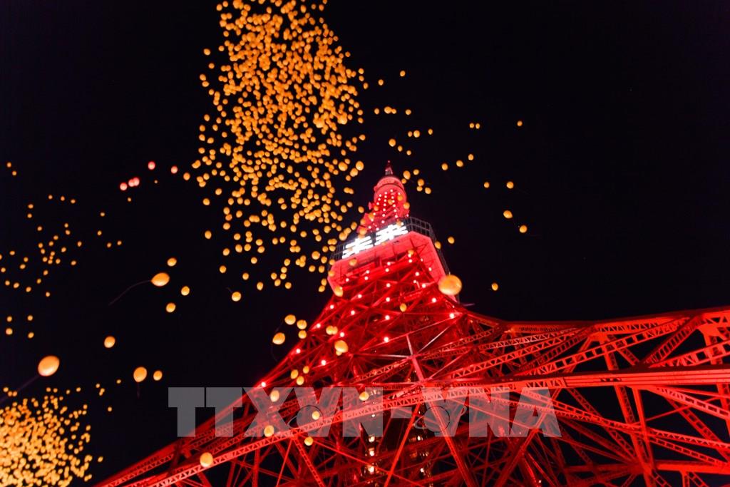 Tháp Tokyo ở Nhật Bản được thắp đèn rực rỡ nhân dịp Tết Nguyên đán Nhâm Dần, ngày 31/1/2022. Ảnh: THX/TTXVN