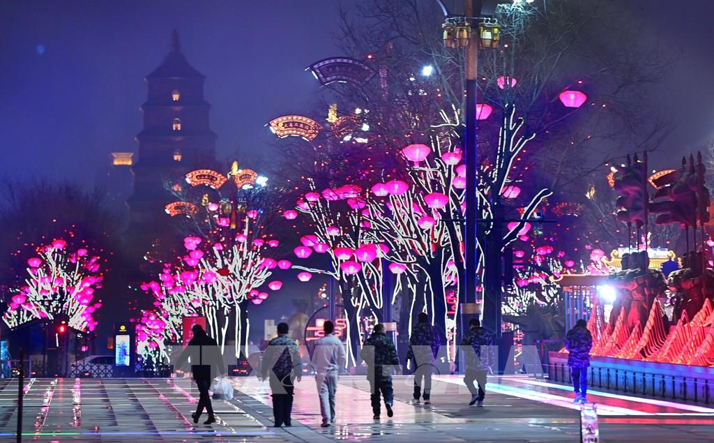 Đường phố được trang hoàng đón Tết Nguyên đán Nhâm Dần tại Tây An, tỉnh Thiểm Tây, Trung Quốc. Ảnh: THX/TTXVN