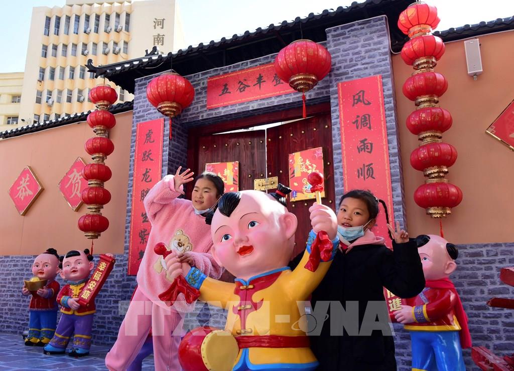 Người dân chụp ảnh lưu niệm nhân dịp Tết Nguyên đán Nhâm Dần 2022 ở thành phố Trịnh Châu, tỉnh Hà Nam (Trung Quốc) ngày 31/1/2022. Ảnh: THX/TTXVN