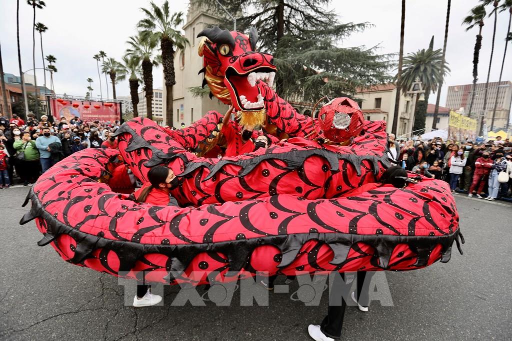 Múa lân, một nét văn hóa đặc trưng chào đón Tết Nguyên đán của người dân châu Á tại bang California, Mỹ ngày 29/1/2022. Ảnh: THX/TTXVN