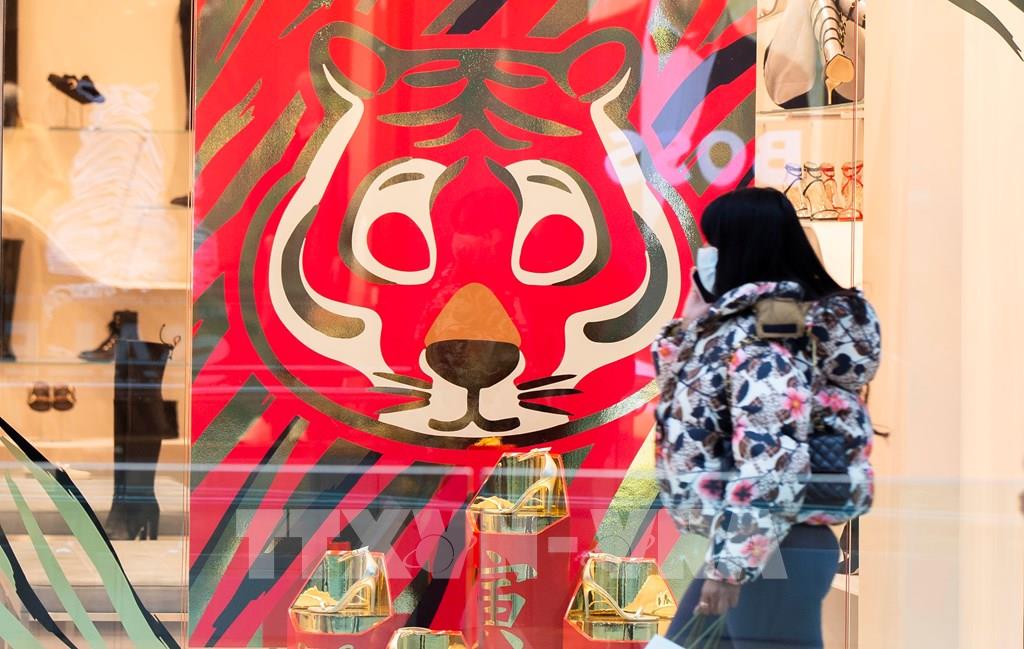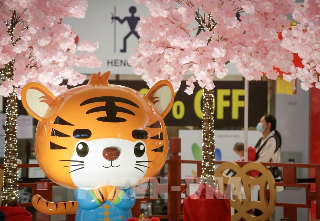 Trang hoàng đón Tết Nguyên đán Nhâm Dần 2022 tại một trung tâm thương mại ở Vancouver, Canada, ngày 30/1/2022. Ảnh: THX/TTXVN