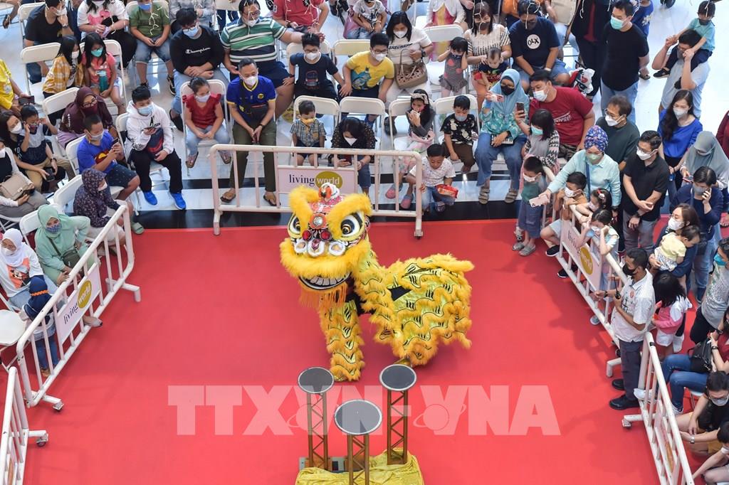 Nghệ sĩ biểu diễn múa lân đón Tết Nguyên đán cổ truyền Nhâm Dần 2022 tại Nam Tangerang, Indonesia. Ảnh: THX/TTXVN