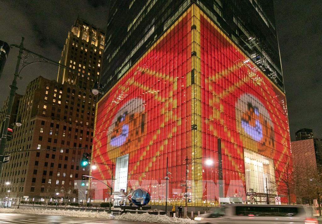 Trung tâm thương mại Thế giới 1 ở New York (Mỹ) trang hoàng nhân dịp Tết Nguyên đán Nhâm Dần 2022 của một số quốc gia châu Á, ngày 30/1/2022. Ảnh: THX/TTXVN