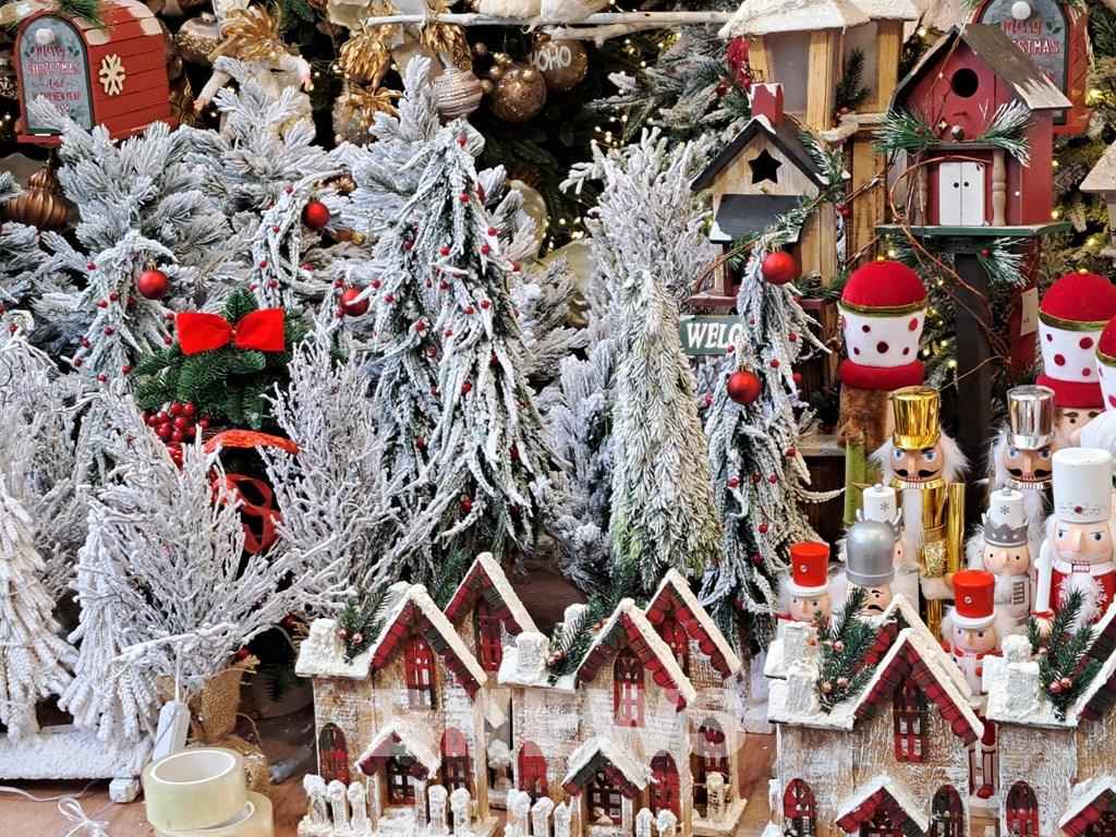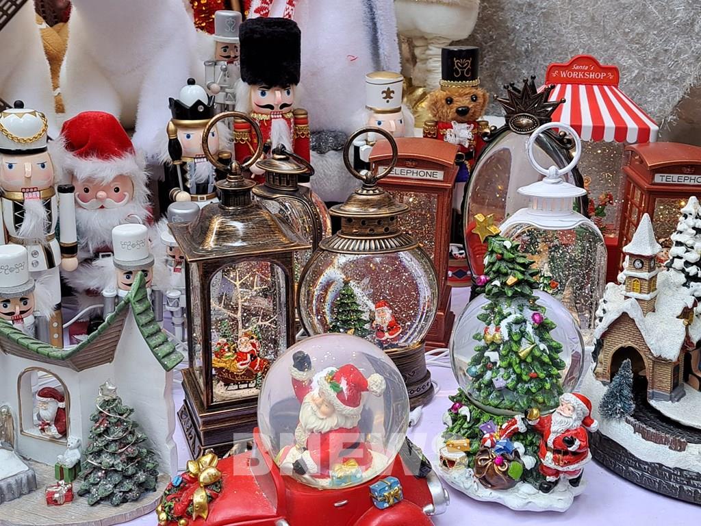 Những món đồ trang trí bằng nhựa với nhiều hình dạng bắt mắt, đặc trưng của mùa lễ hội Noel có giá từ 90.000 đồng trở lên. Ảnh: Bạch Diệp/BNEWS