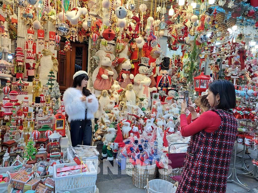 Chưa đầy 1 tháng nữa là tới lễ Giáng sinh, phố Hàng Mã luôn tấp nập người mua, bán. Ảnh: Bạch Diệp/BNEWS