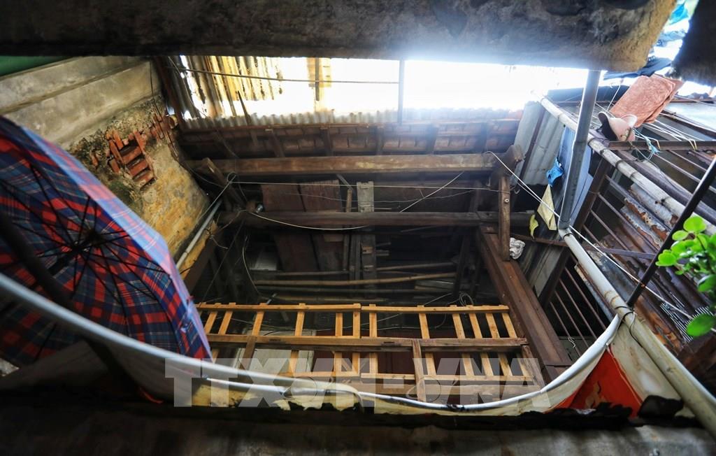Chật chội, bị mối mọt xông, không nhà vệ sinh và thiếu ánh sáng... khiến những khu tập thể gỗ này được ví như khu "ổ chuột" giữa trung tâm Thủ đô. Ảnh: Thành Đạt - TTXVN
