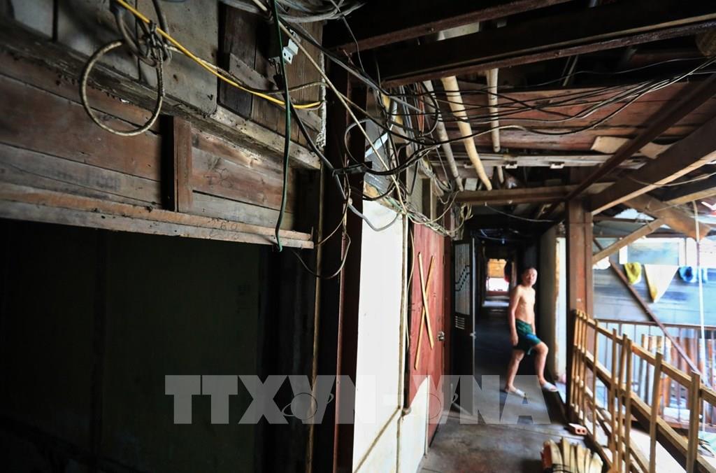 Hiện nay trên tầng 2 của khu tập thể gỗ còn khoảng 5 đến 6 hộ dân sinh sống. Ảnh: Thành Đạt - TTXVN
