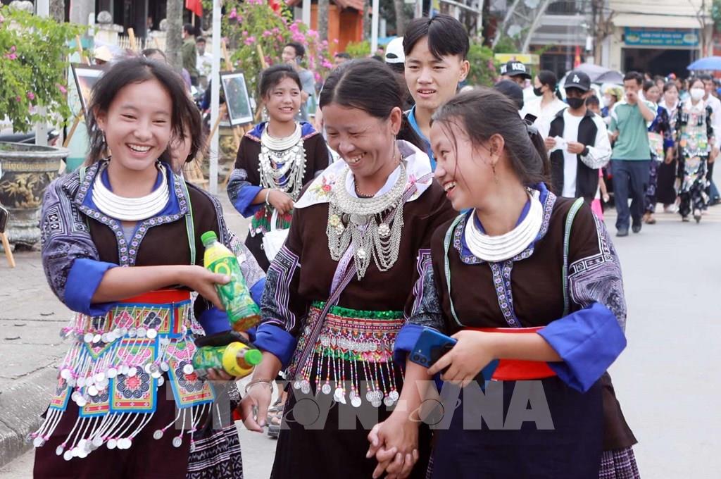 15:29' - 02/09/2024Đồng bào dân tộc Mông xuống phố vui Tết Độc lập. Ảnh: Quý Trung – TTXVN ; Ngày Quốc khánh 2/9 hàng năm, đồng bào dân tộc Mông ở khắp các thôn, bản làng trên vùng cao xa xôi của tỉnh Lai Châu nói riêng và các tỉnh lân cận Lào Cai, Yên Bái.. lại nô nức tụ hội về "Miền đất gió" Than Uyên để chung vui trong ngày Tết Độc lập và giao lưu văn hóa, gặp gỡ, trao đổi các mặt hàng truyền thống, thể hiện tình đoàn kết gắn bó.