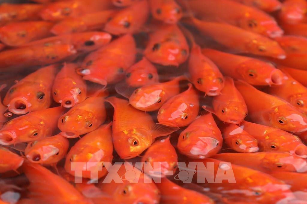 Cá chép làng Thủy Trầm có màu đỏ tươi. Ảnh: Minh Quyết – TTXVN