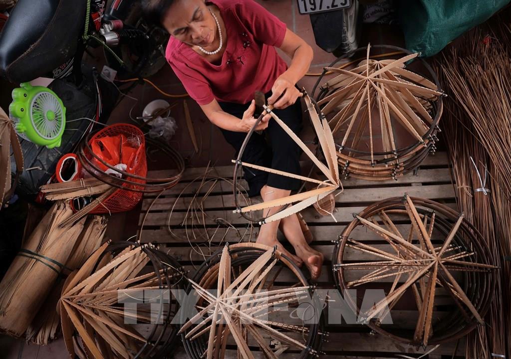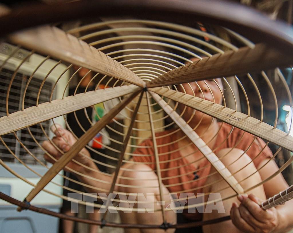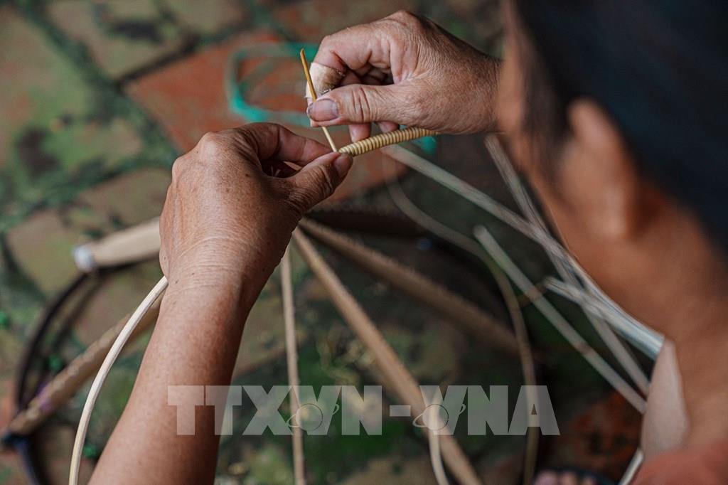 Vức vòng (còn gọi là khung nón) được làm bằng cật nứa vót nhỏ đều, khi nối bắt buộc phải tròn và không có vết. Ảnh: Phạm Tuấn Anh-TTXVN