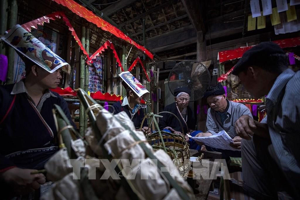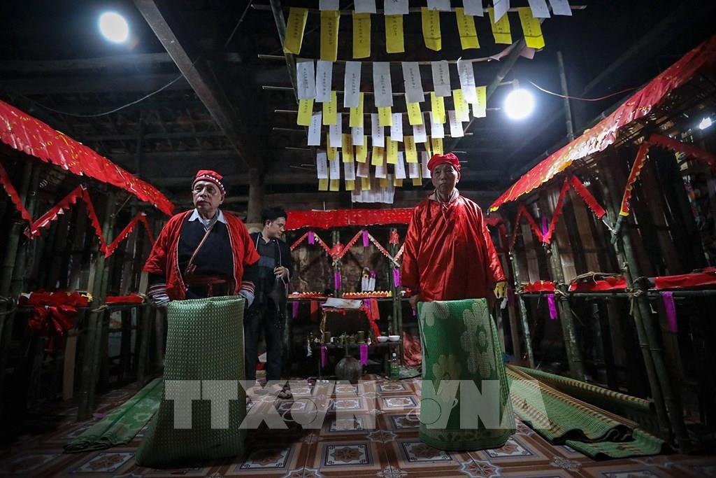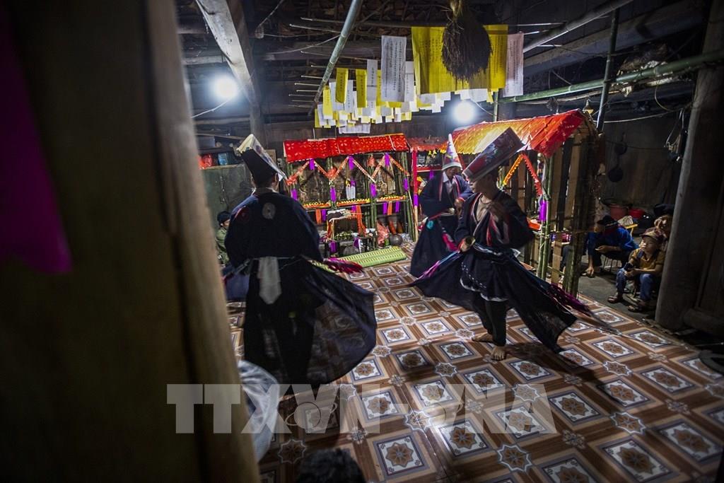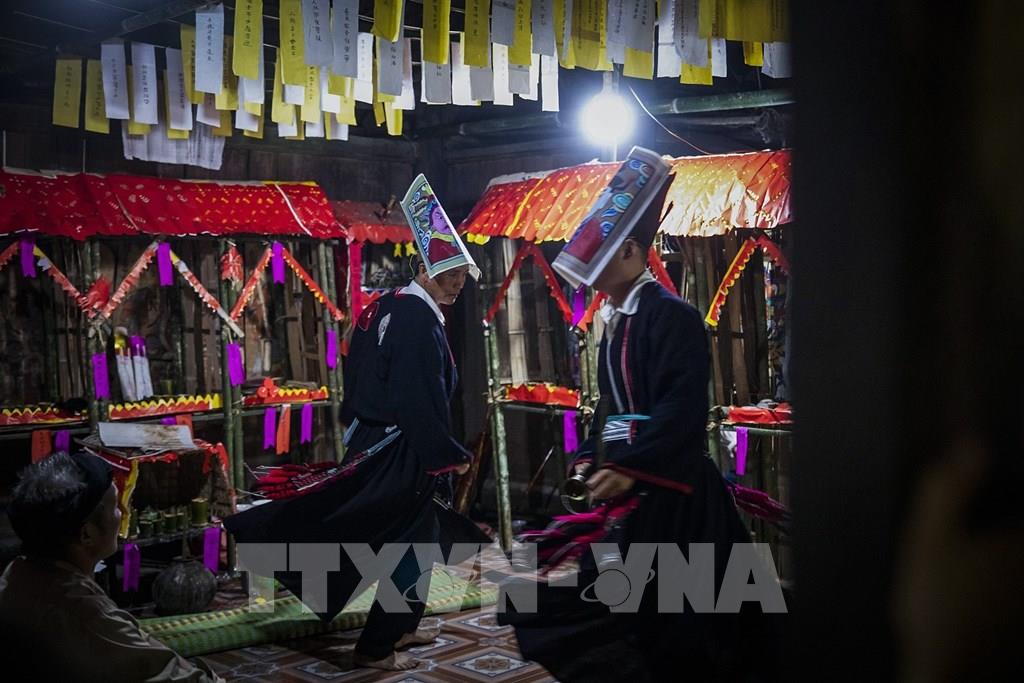 Lễ đám chay và Nghi lễ cấp sắc 12 đèn gồm nhiều lễ cúng quan trọng, diễn ra trong không gian văn hóa mang đậm bản sắc dân tộc Dao. Ảnh: Trọng Đạt - TTXVN