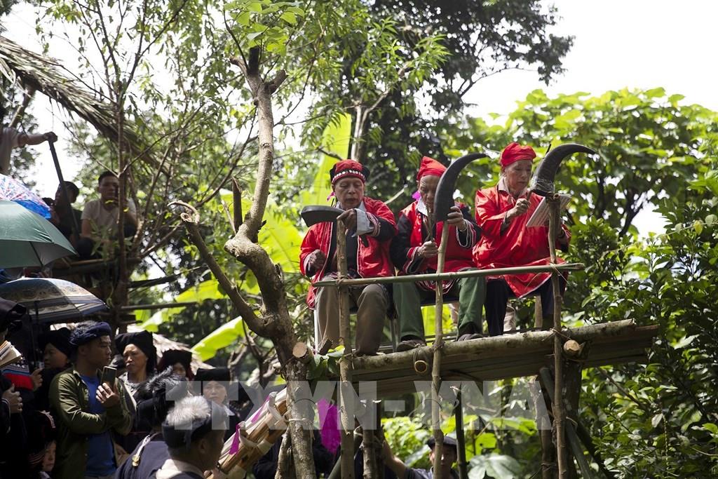 Lễ “Đám chay” là một nghi lễ lớn của dòng họ, tất cả con cháu đều phải tham dự vào các hoạt động tín ngưỡng diễn ra trong suốt thời gian tổ chức. Ảnh: Trọng Đạt - TTXVN