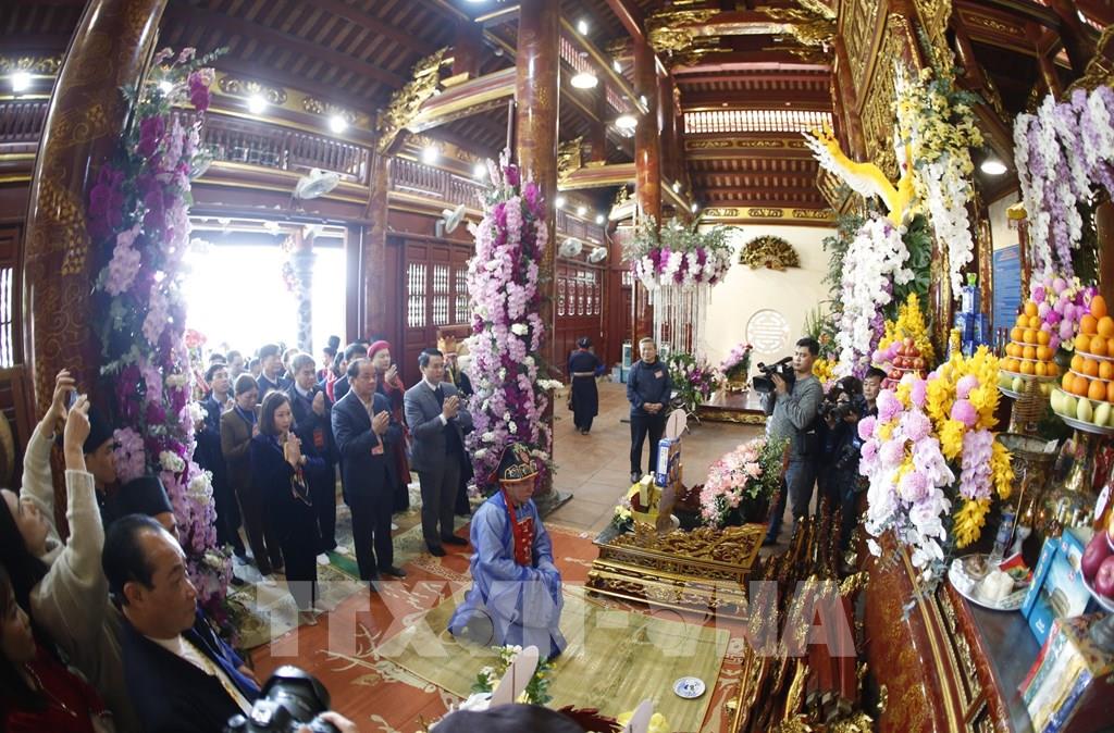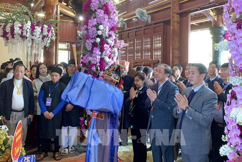 Lễ hội truyền thống Đền Đông Cuông giữ một vai trò đặc biệt quan trọng trong đời sống văn hóa tinh thần của cộng đồng. Ảnh: Tuấn Anh - TTXVN