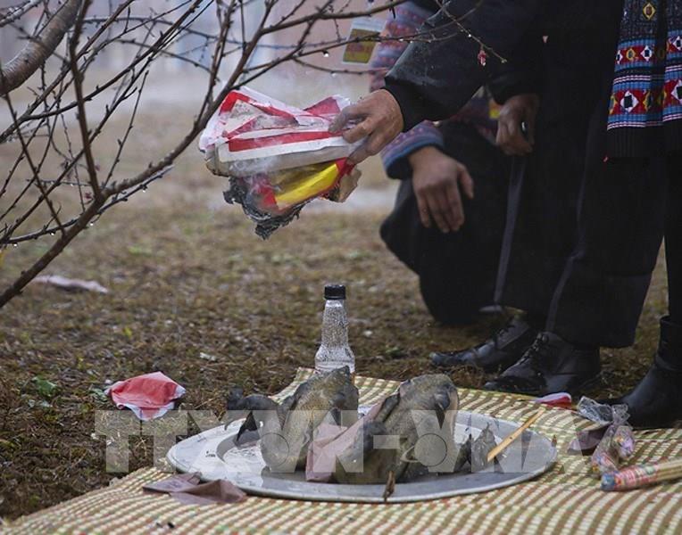 Thầy cúng thực làm lễ cầu trời đất, thần linh phù hộ cho bản làng yên vui, mọi nhà no đủ, người người khỏe mạnh, ăn nên làm ra... Ảnh: Trọng Đạt-TTXVN
