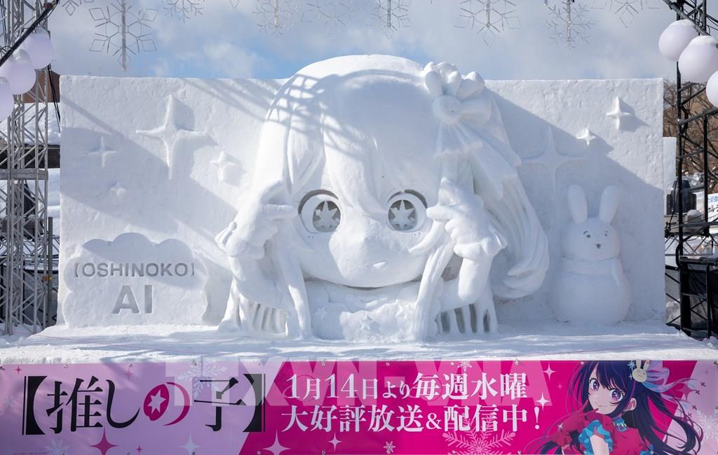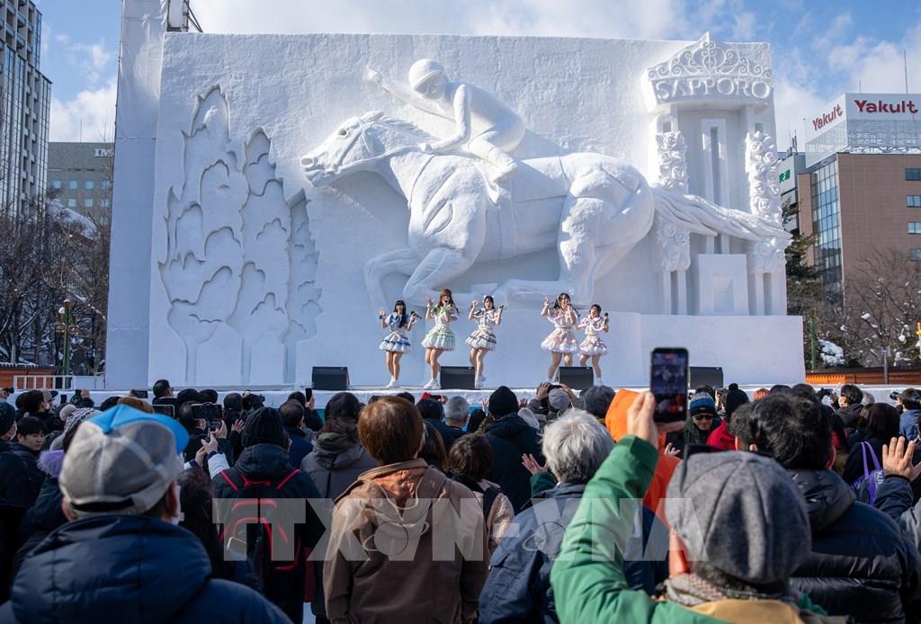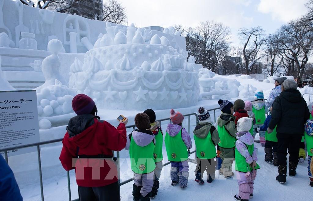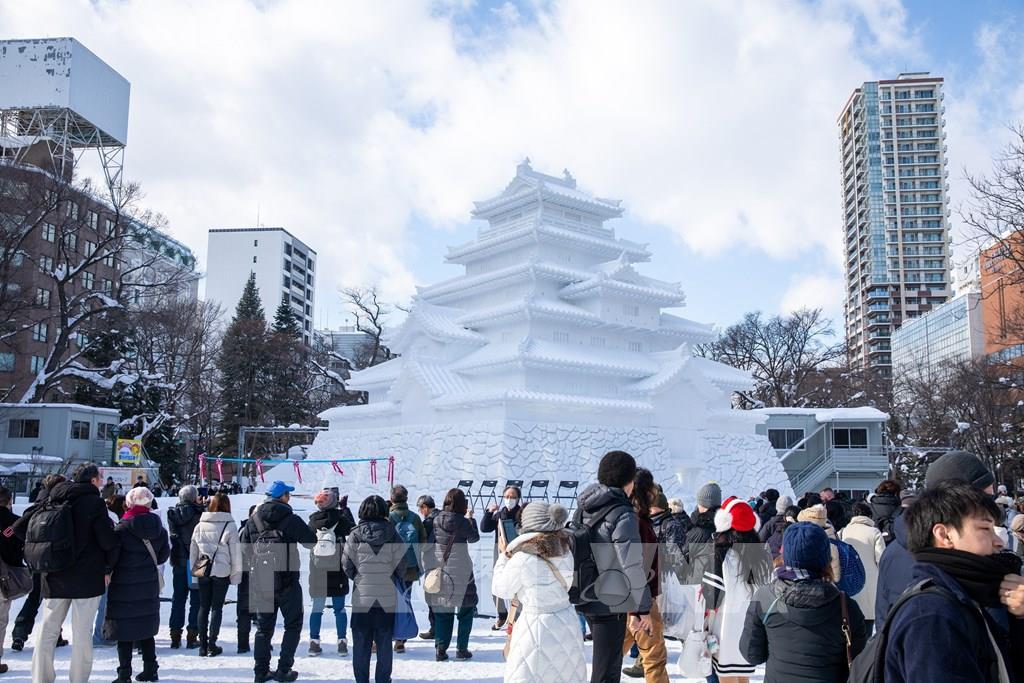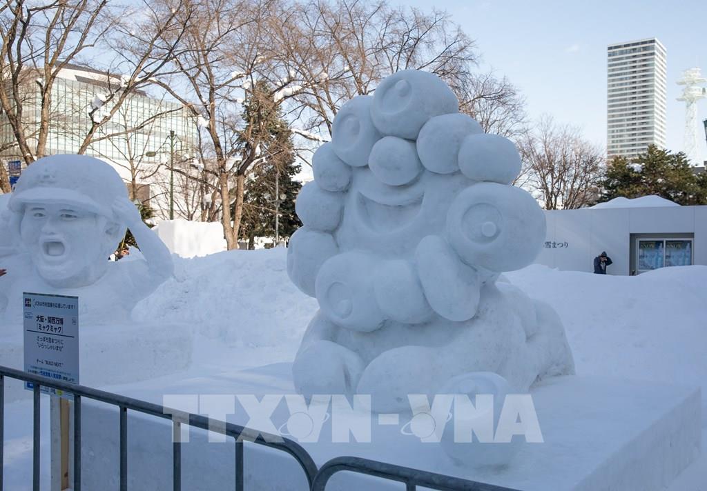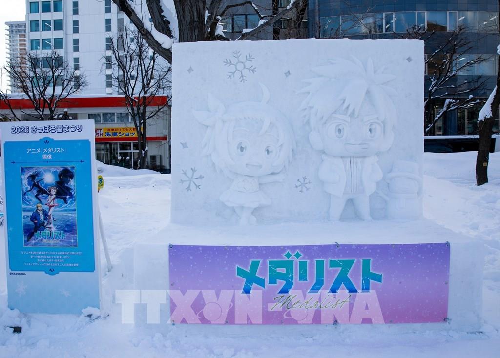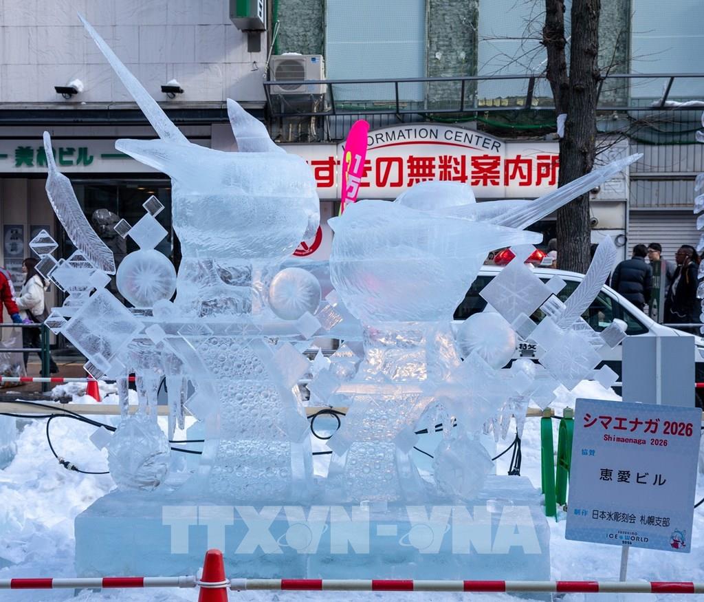 Tác phẩm điêu khắc băng loài chim Shimaenaga - biểu tượng mùa Đông của Hokkaido. Ảnh: Xuân Giao – PV TTXVN