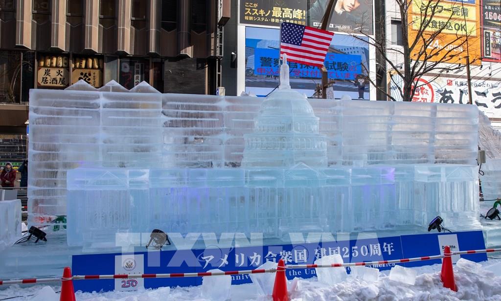 Tác phẩm điêu khắc băng chào mừng kỷ niệm 250 năm thành lập nước Mỹ (1776 - 2026). Ảnh: Xuân Giao – PV TTXVN