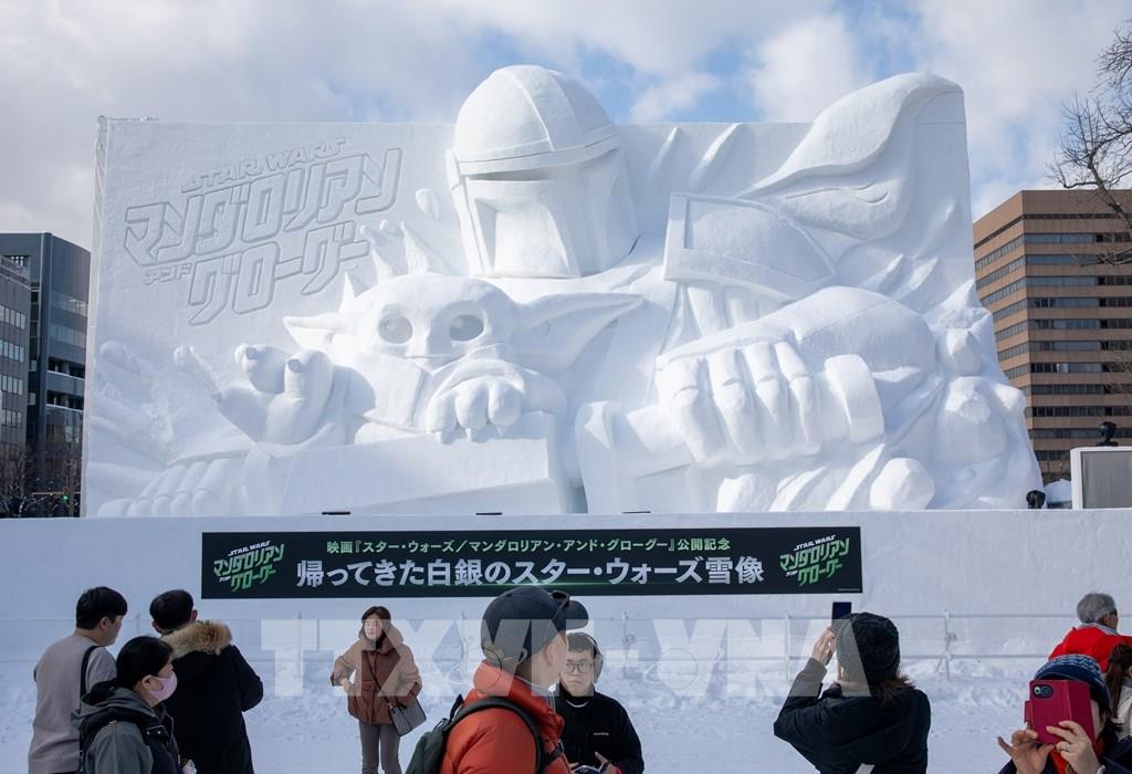 Tác phẩm điêu khắc tuyết khổng lồ các nhân vật trong loạt phim giả tưởng nổi tiếng Star Wars nổi bật tại lễ hội. Ảnh: Xuân Giao – PV TTXVN