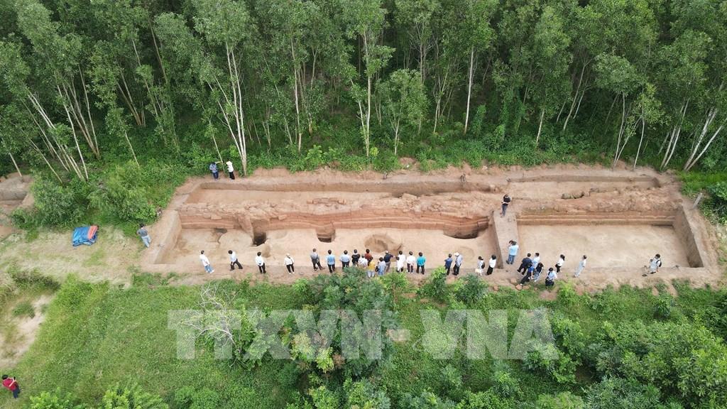 Từ tháng 11/2022 đến tháng 8/2023, Viện Khoa học xã hội vùng Nam Bộ và Sở Văn hóa, Thể thao tỉnh Bà Rịa-Vũng Tàu đã tiến hành khai quật tại di tích khảo cổ học Vòng Thành Đá Trắng có tổng diện tích 3.000 mét vuông ở xã Phước Thuận, huyện Xuyên Mộc, tỉnh Bà Rịa - Vũng Tàu. Ảnh: Huỳnh Sơn-TTXVN