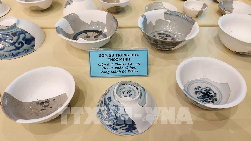Gốm sứ Trung Hoa thời nhà Minh được tìm thấy tại di tích Vòng thành Đá Trắng. Ảnh: Huỳnh Sơn-TTXVN