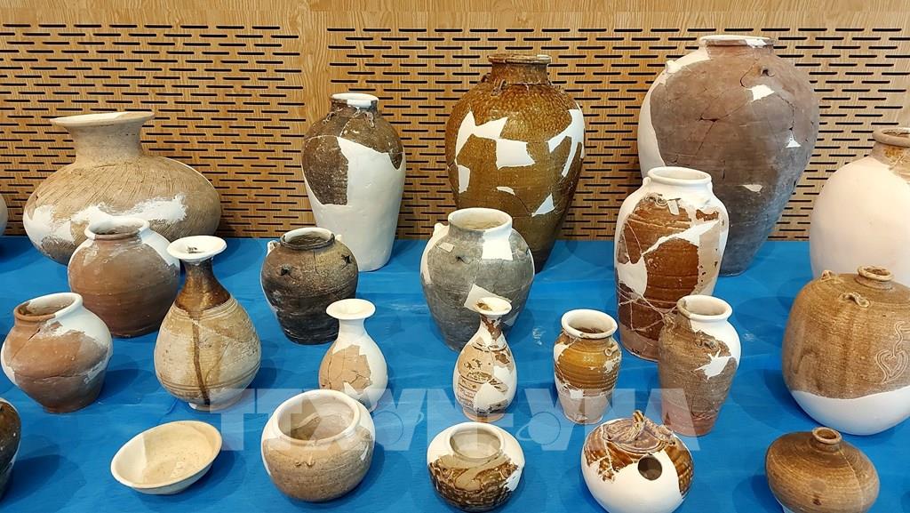 Gốm Đại Việt được tìm thấy tại di tích Vòng Thành Đá Trắng. Ảnh: Huỳnh Sơn-TTXVN