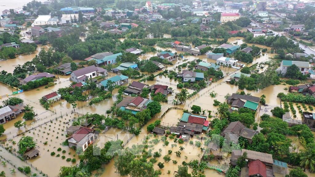 13:06' - 17/10/2020Sáng 17/10/2020, Quảng Trị vẫn tiếp tục phải hứng chịu mưa lớn trên diện rộng, lũ trên các sông tiếp tục dâng cao, hầu hết các sông đều vượt mức báo động 3. Nhiều làng mạc bị ngập chìm trong nước lũ, giao thông bị tê liệt do ngập lụt nặng.