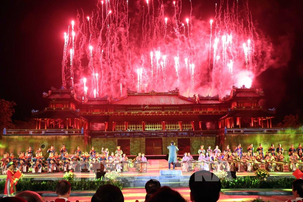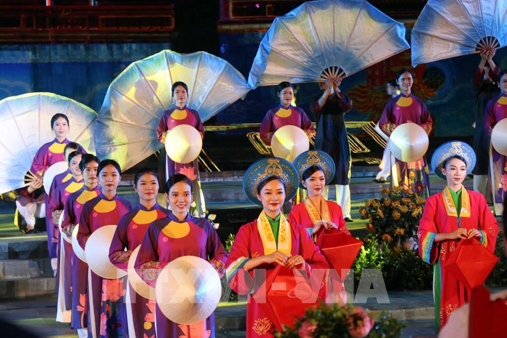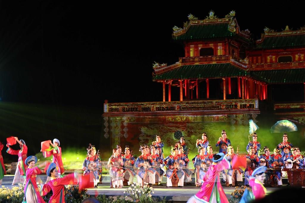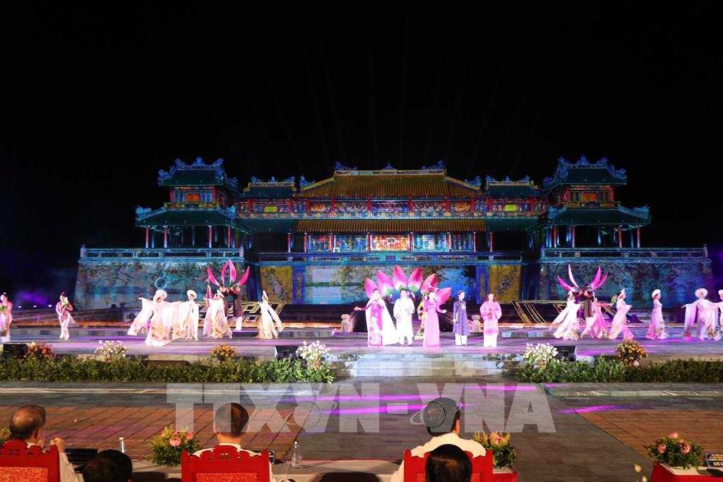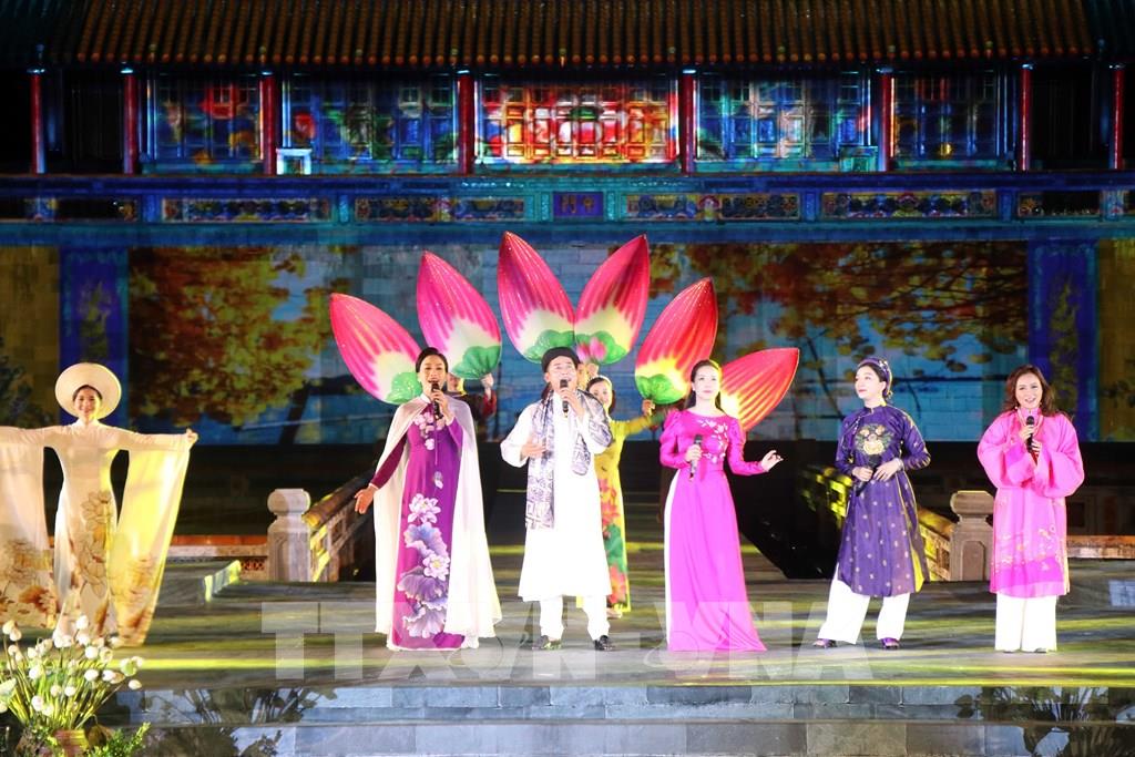 Đêm khai mạc Tuần lễ Festival Huế 2022 với chương trình nghệ thuật mang tên “Đất nước thái hòa, bốn phương an lạc”. Ảnh: Đỗ Trưởng - TTXVN