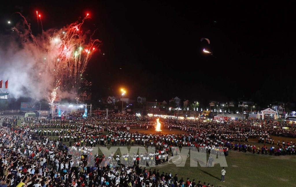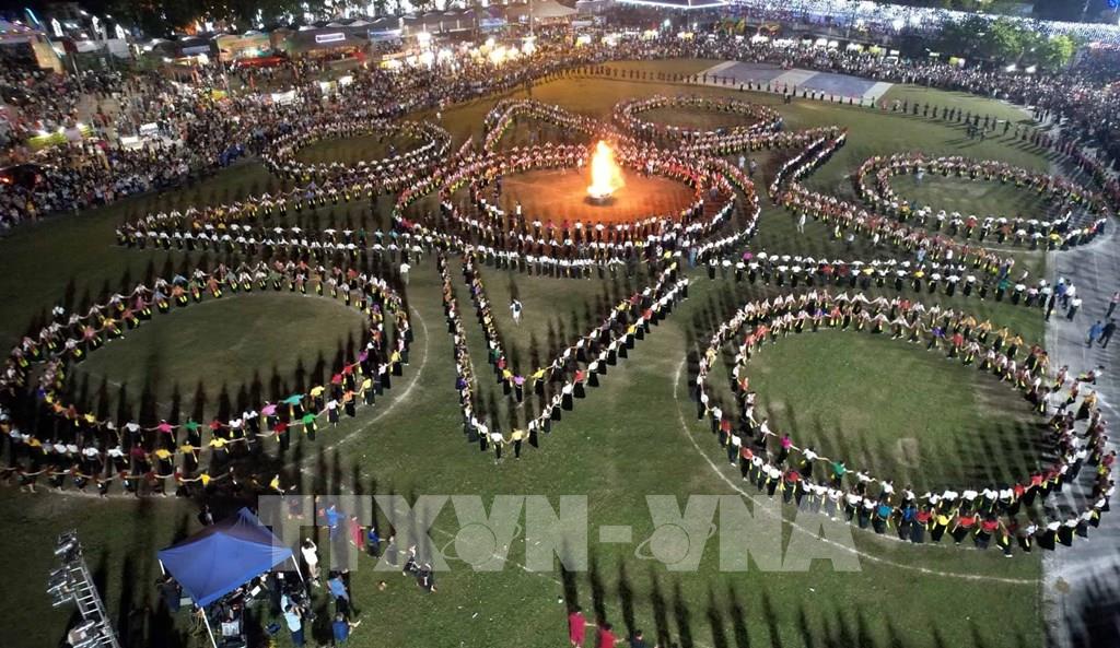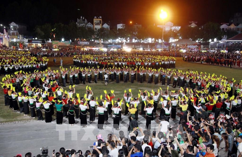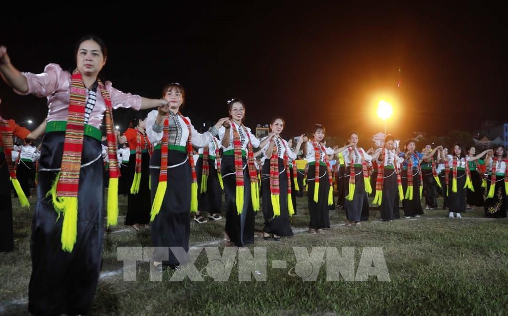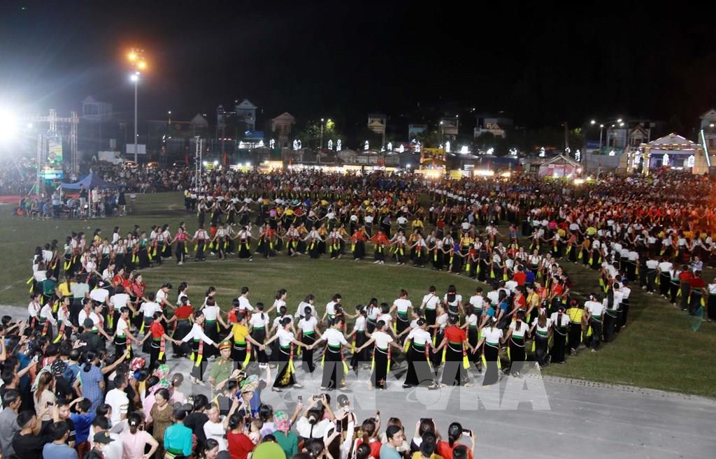 Vòng xòe Đoàn kết thu hút đông đảo người dân cùng du khách tham dự. Ảnh: Quý Trung – TTXVN