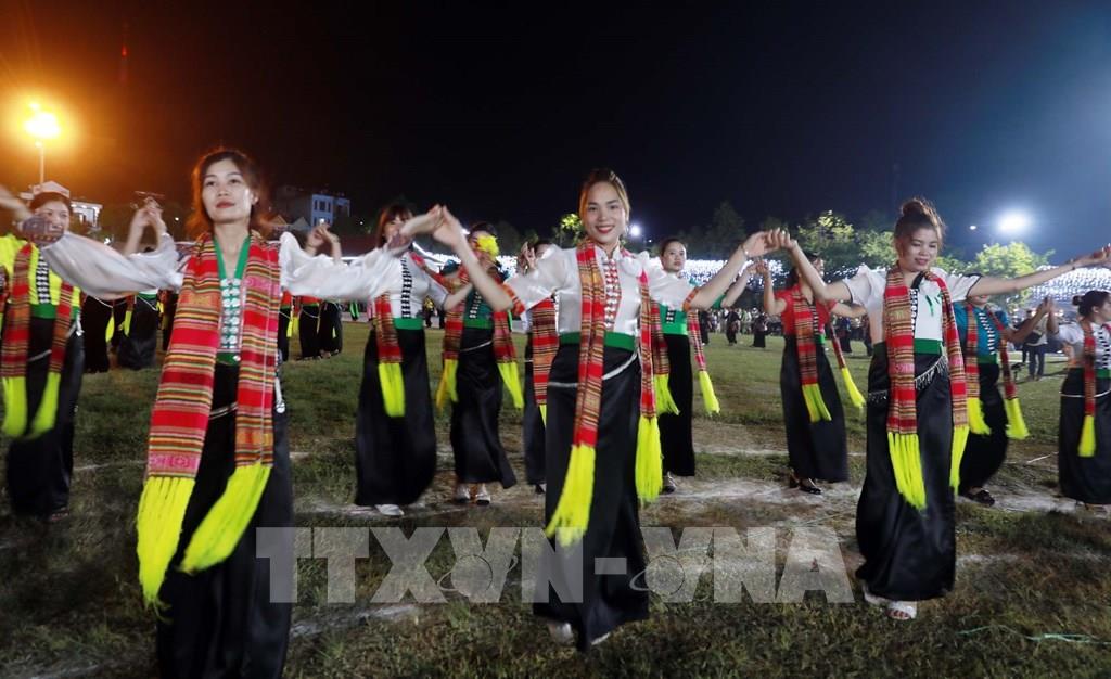 Vòng xòe Đoàn kết là một trong những nét văn hóa đặc sắc của đồng bào dân tộc Thái sống trên địa bàn huyện Than Uyên. Ảnh: Quý Trung – TTXVN
