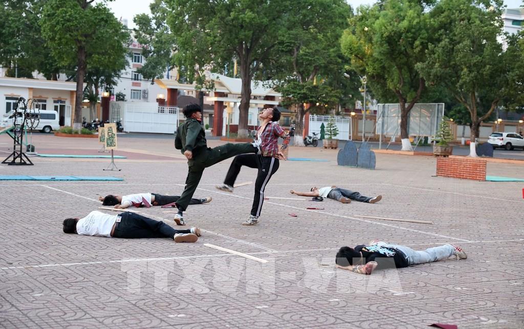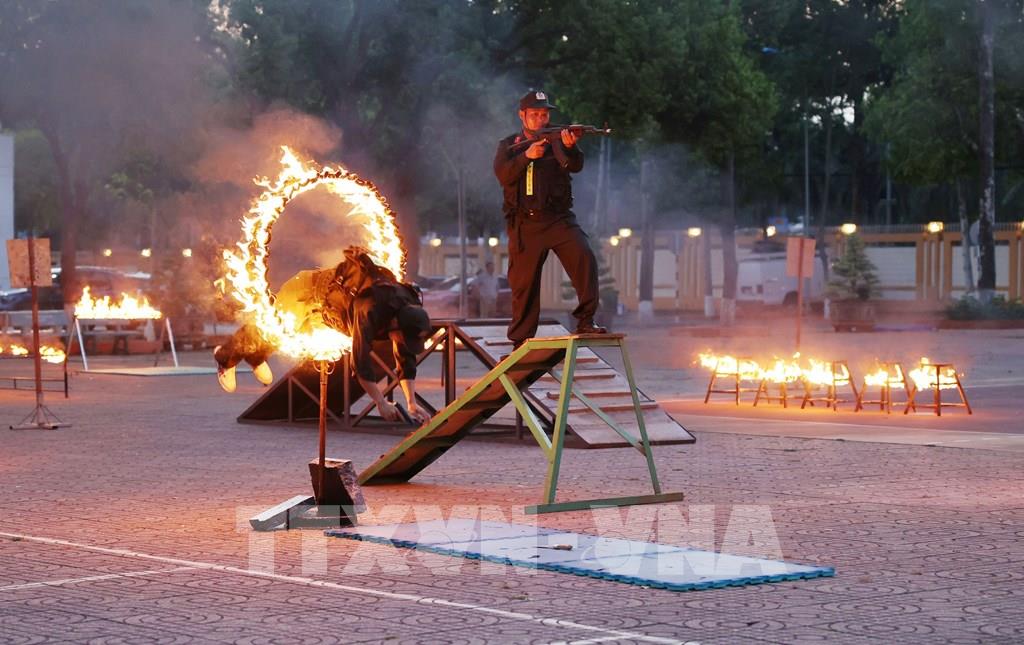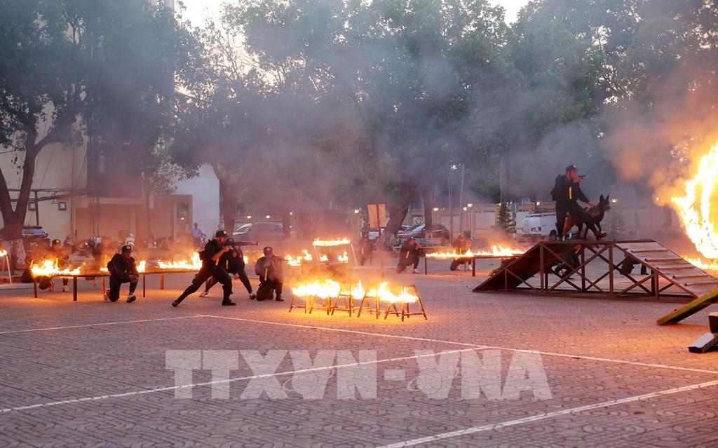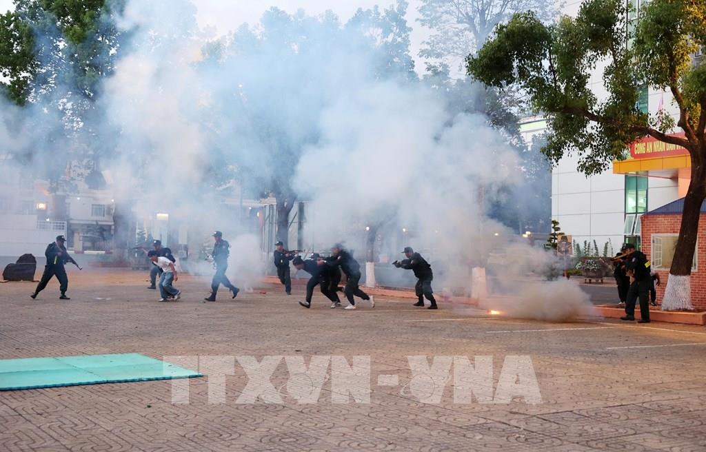 Lực lượng Cảnh sát cơ động Công an tỉnh Đắk Lắk được huấn luyện các tình huống phù hợp thực tế nhằm tạo nên sự gan dạ, kiên cường. Ảnh: Hoài Thu - TTXVN