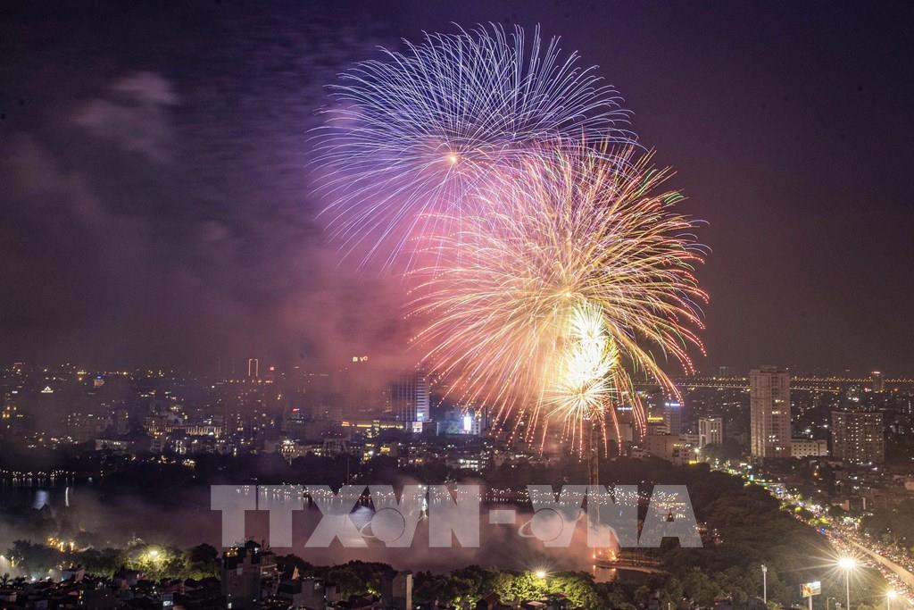 Tối 2/9, người dân Hà Nội được thưởng thức những màn pháo hoa nghệ thuật rực rỡ chào mừng kỷ niệm 80 năm Cách mạng Tháng Tám thành công (19/8/1945 - 19/8/2025) và Quốc khánh nước Cộng hòa xã hội chủ nghĩa Việt Nam (2/9/1945 - 2/9/2025). Ảnh: TTXVN