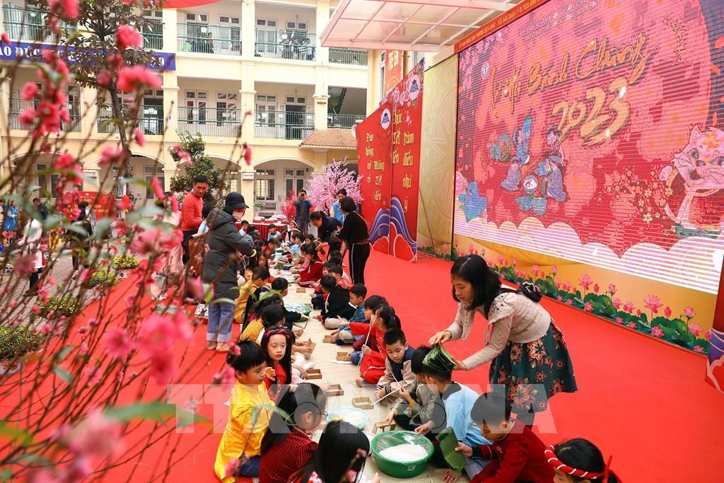 10:14' - 11/01/2023Nhiều trường học trên địa bàn Thủ đô đã tổ chức các hoạt động trải nghiệm ý nghĩa cho học sinh gắn với Tết cổ truyền của dân tộc. Qua đó, không chỉ tạo giờ ngoại khóa bổ ích mà còn giúp các em thêm hiểu, trân trọng, yêu quý văn hóa truyền thống của dân tộc. Tại Trường Tiểu học Trung Yên (quận Cầu Giấy) các em học sinh, chào đón năm mới bằng các hoạt động trải nghiệm Lễ hội gói bánh chưng và hội chợ Xuân yêu thương, tham gia các trò chơi dân gian...