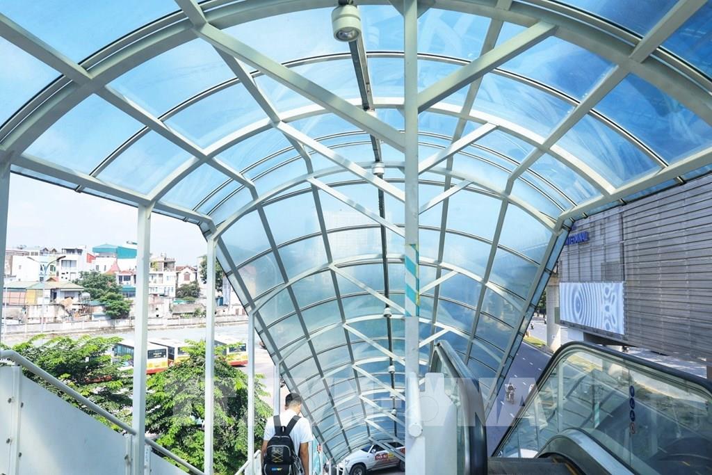 Lối lên xuống các ga được bố trí mái che tránh mưa nắng. Ảnh: Tuấn Anh - TTXVN