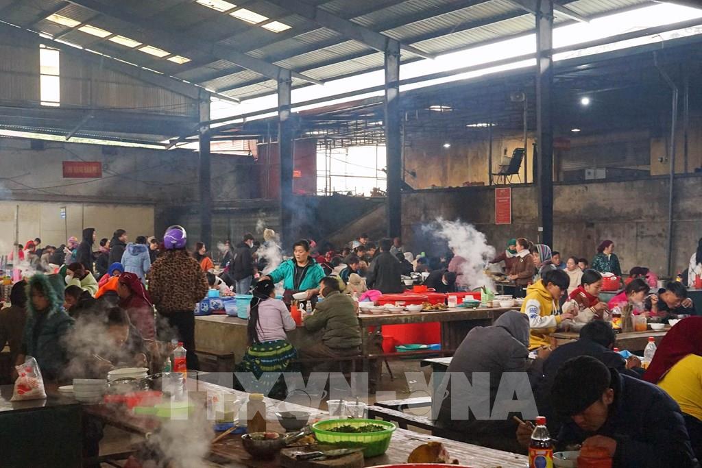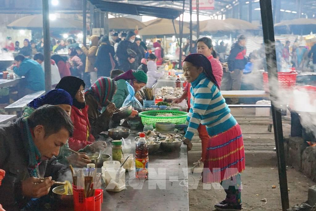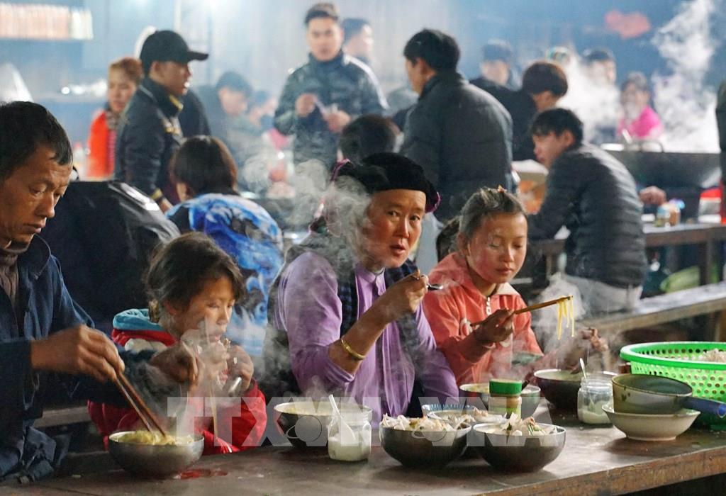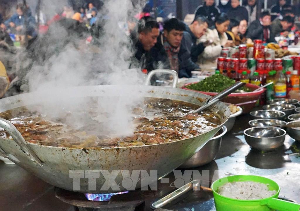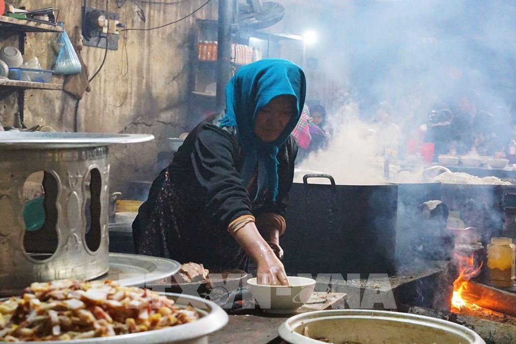 Khu vực ẩm thực tại chợ phiên Mèo Vạc luôn đỏ lửa với những món ăn địa phương. Ảnh: Khánh Hòa - TTXVN