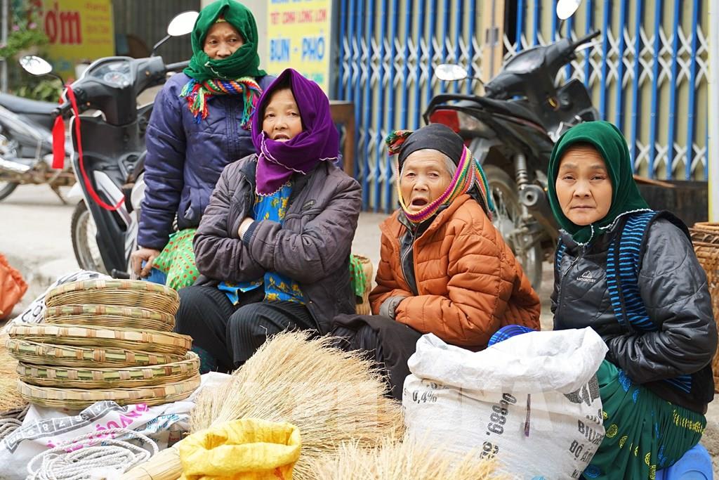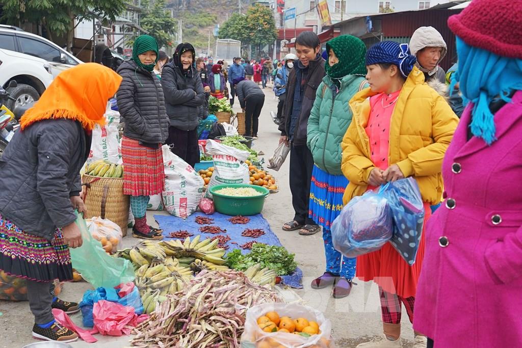 Người bán hàng ở chợ phiên Mèo Vạc là những cư dân trên địa bàn, mang sản phẩm của gia đình ra chợ trao đổi, mua bán. Ảnh: Khánh Hòa - TTXVN