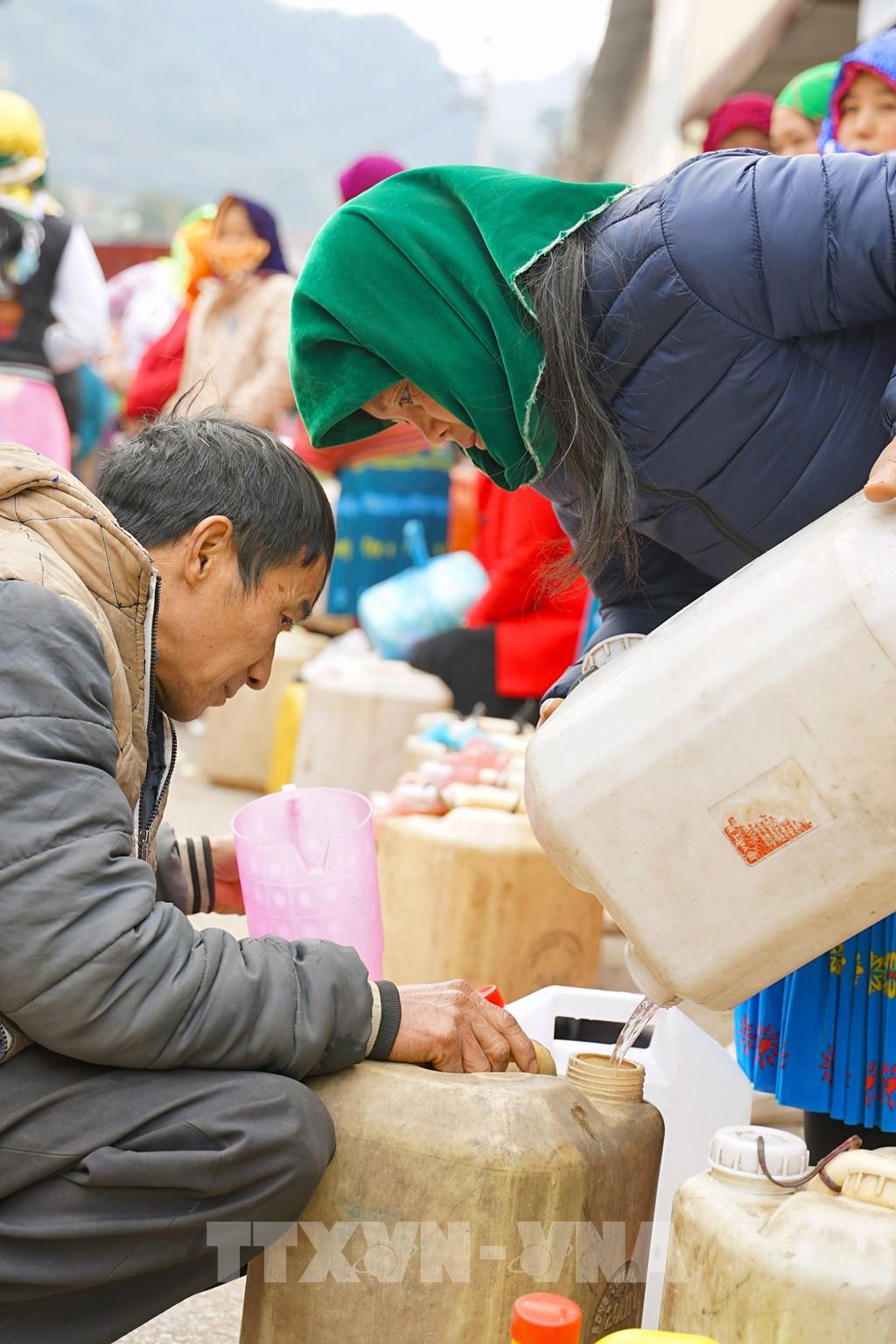Điều đặc biệt ở chợ phiên Mèo Vạc là những người bán và mua rượu chủ yếu là phụ nữ. Ảnh: Khánh Hòa - TTXVN