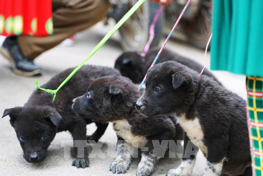 Chó Mông Cộc, giống chó bản địa Hà Giang, là một trong bốn quốc khuyển của Việt Nam được bán tại chợ phiên Mèo Vạc. Ảnh: Khánh Hòa - TTXVN